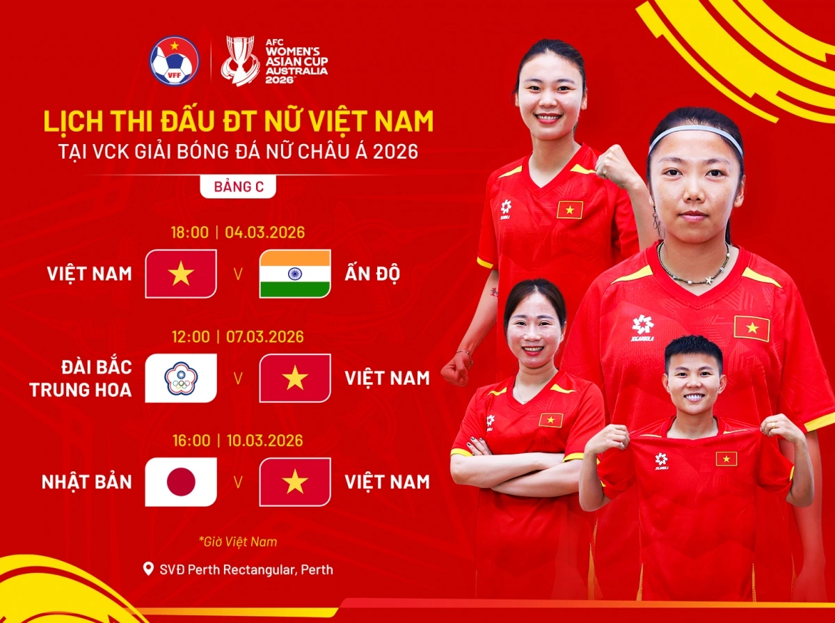 Tại AFC Women’s Asian Cup 2026 diễn ra ở Australia từ ngày 1 đến 21-3, ĐT nữ Việt Nam bước vào hành trình mới với nhiều kỳ vọng. Giải đấu năm nay không chỉ là sân chơi số một châu lục mà còn là vòng loại quan trọng hướng đến World Cup nữ 2027, khiến từng trận vòng bảng đều mang ý nghĩa bản lề.