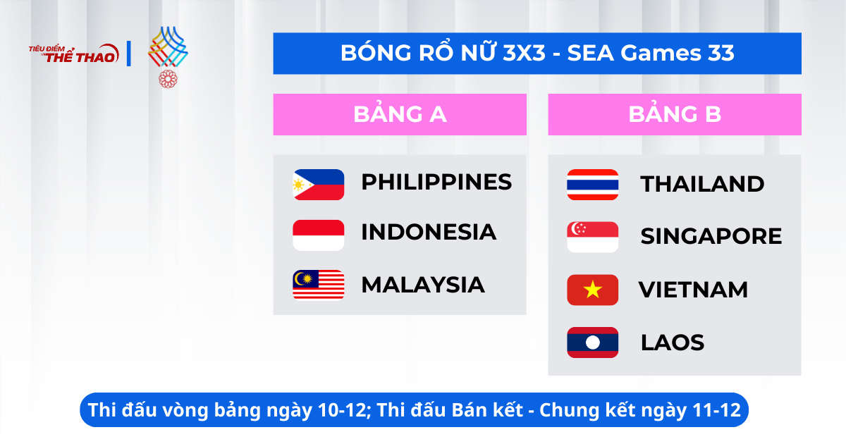 Môn bóng rổ 3×3 nữ tại SEA Games 33 quy tụ 7 ĐT tranh tài, được chia làm hai bảng đấu. Hai đội nhất và nhì mỗi bảng sẽ giành quyền vào bán kết. Lá thăm may rủi đã đưa Việt Nam vào bảng B cùng với chủ nhà Thái Lan, Singapore và Lào. Đây được đánh giá là bảng đấu không hề dễ dàng, đòi hỏi sự tập trung cao độ ngay từ những phút đầu tiên của các VĐV Việt Nam.