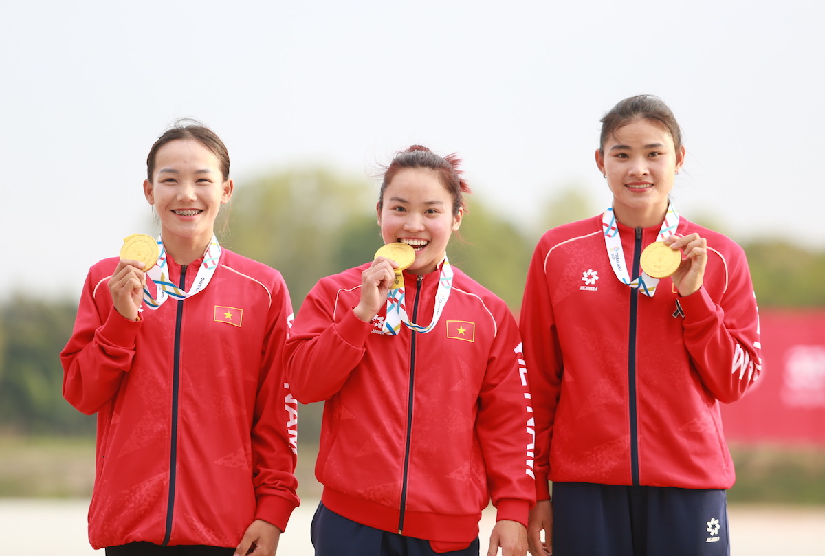 Sau những nỗ lực không ngừng nghỉ, Đoàn TTVN cũng đã có 1 tấm huy chương vàng (HCV) đầu tiên do công cặp đôi tay chèo Nguyễn Thị Hương và Diệp Thị Hương, tại môn chèo Canoeing nội dung chung kết thuyền đôi nữ 500m.