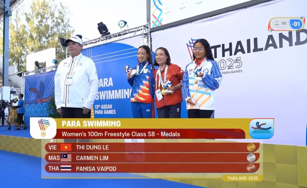Tiếp đà hưng phấn, Trịnh Thị Bích Như góp thêm HCV thứ ba ở nội dung 100m bơi ếch nữ hạng thương tật SB4–5, tiếp tục nối dài chuỗi thành công của bơi Việt Nam trong ngày.