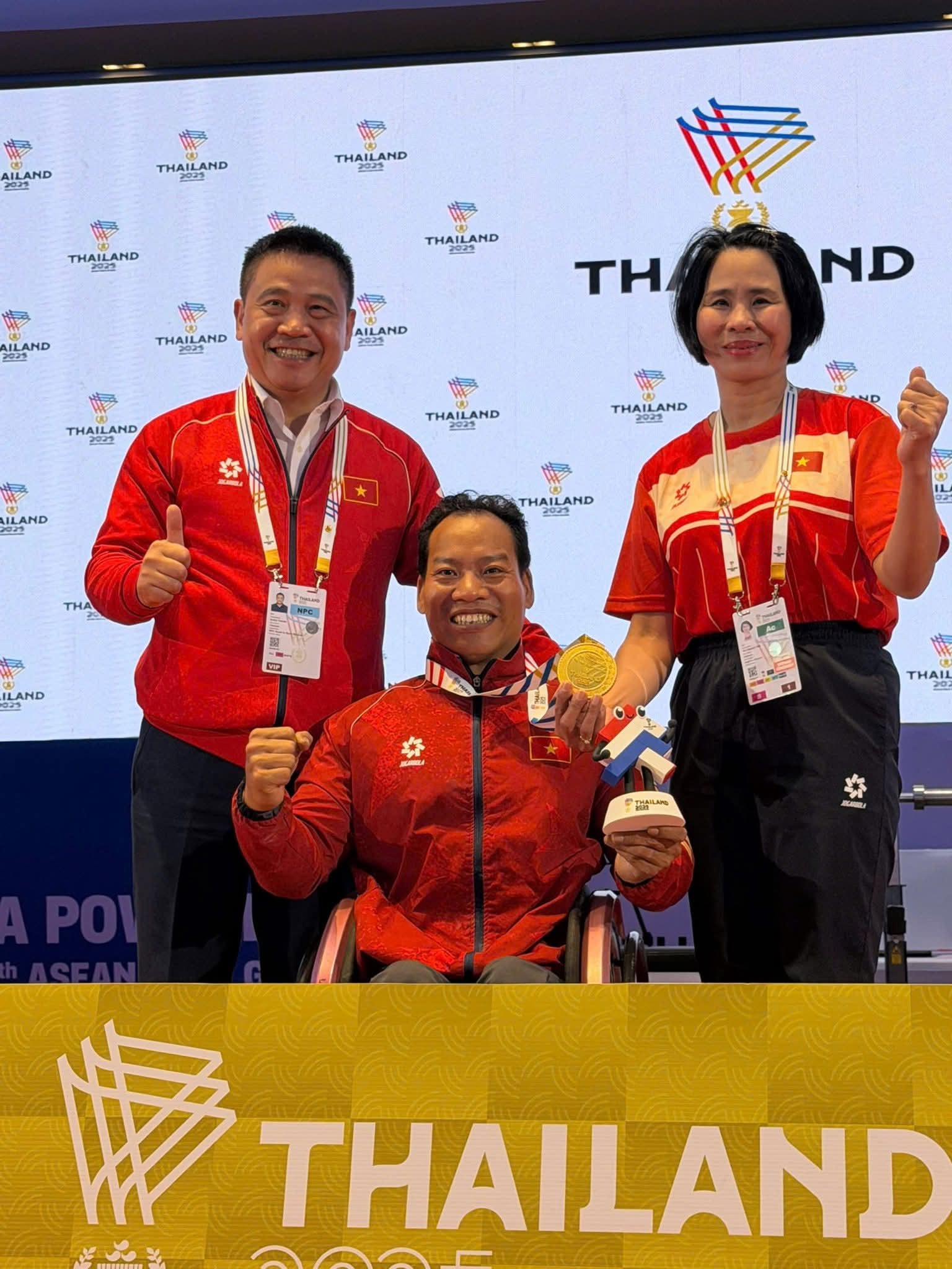 Đoàn Thể thao NKT Việt Nam khép lại ngày thi đấu ấn tượng với môn cử tạ, nơi lực sĩ kỳ cựu Lê Văn Côn (41 tuổi) giành HCV thứ tám cho đoàn ở hạng 49kg nam. Anh cử thành công mức tạ 178kg, hơn 1kg so với đối thủ cạnh tranh trực tiếp đến từ Indonesia, qua đó khẳng định đẳng cấp và bản lĩnh của một trong những trụ cột giàu kinh nghiệm nhất của ĐT.