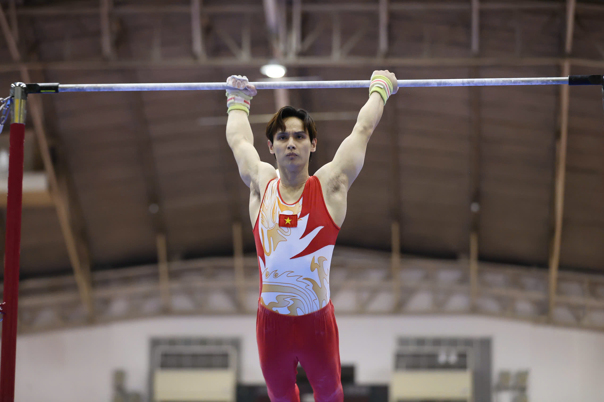 Trong khi đó, đúng như mong đợi, VĐV Đinh Phương Thành thể hiện sự vượt trội ở chung kết xà kép nam. Với bài thi đạt 12.900 điểm, anh đoạt HCV thứ 19 cho Đoàn TTVN.