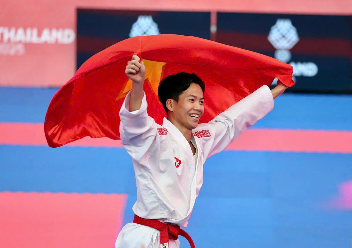 Karate cũng ghi dấu ấn với HCV thứ 18. Võ sĩ Khuất Hải Nam thi đấu áp đảo và giành chiến thắng 6-1 trước đối thủ Thái Lan ở chung kết Kumite 67kg nam, giải cơn khát vàng cho ĐT Karate Việt Nam trong ngày thi đấu hôm nay.