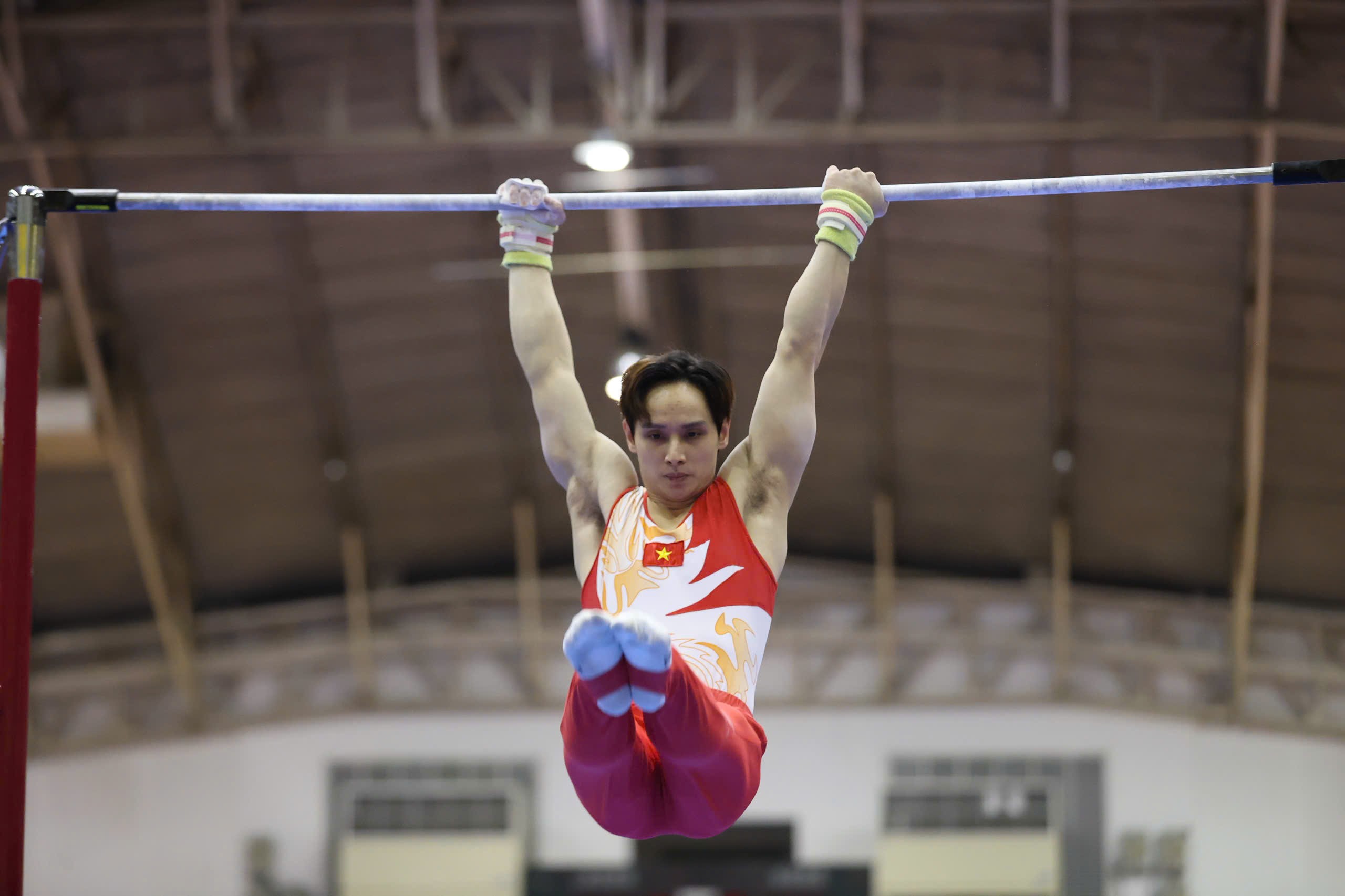 Trong khi đó, đúng như mong đợi, VĐV Đinh Phương Thành thể hiện sự vượt trội ở chung kết xà kép nam. Với bài thi đạt 12.900 điểm, anh đoạt HCV thứ 19 cho Đoàn TTVN.