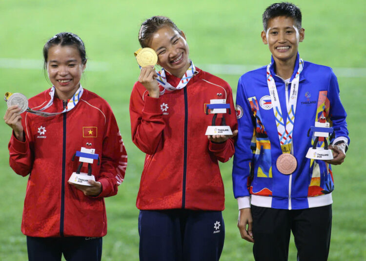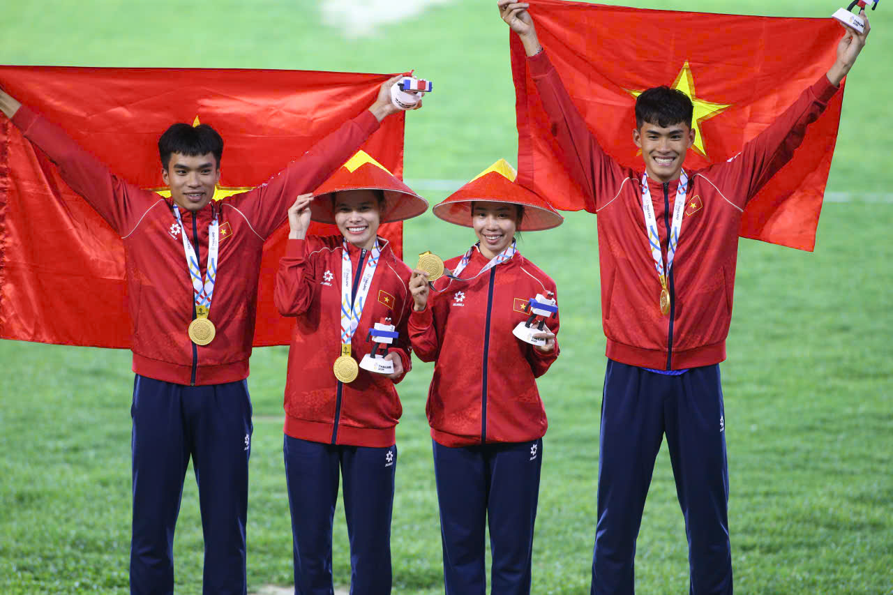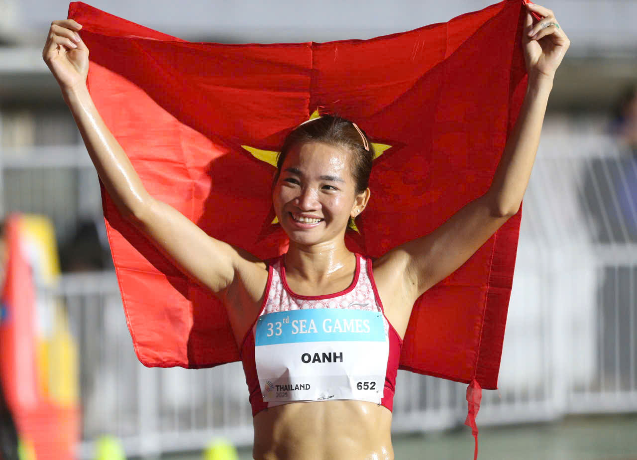 Trên đường chạy Điền kinh, “cô gái vàng” Nguyễn Thị Oanh giành HCV cự ly 5.000m nữ với thành tích 16 phút 27 giây, cân bằng kỷ lục 13 HCV SEA Games của huyền thoại Nguyễn Thị Huyền.