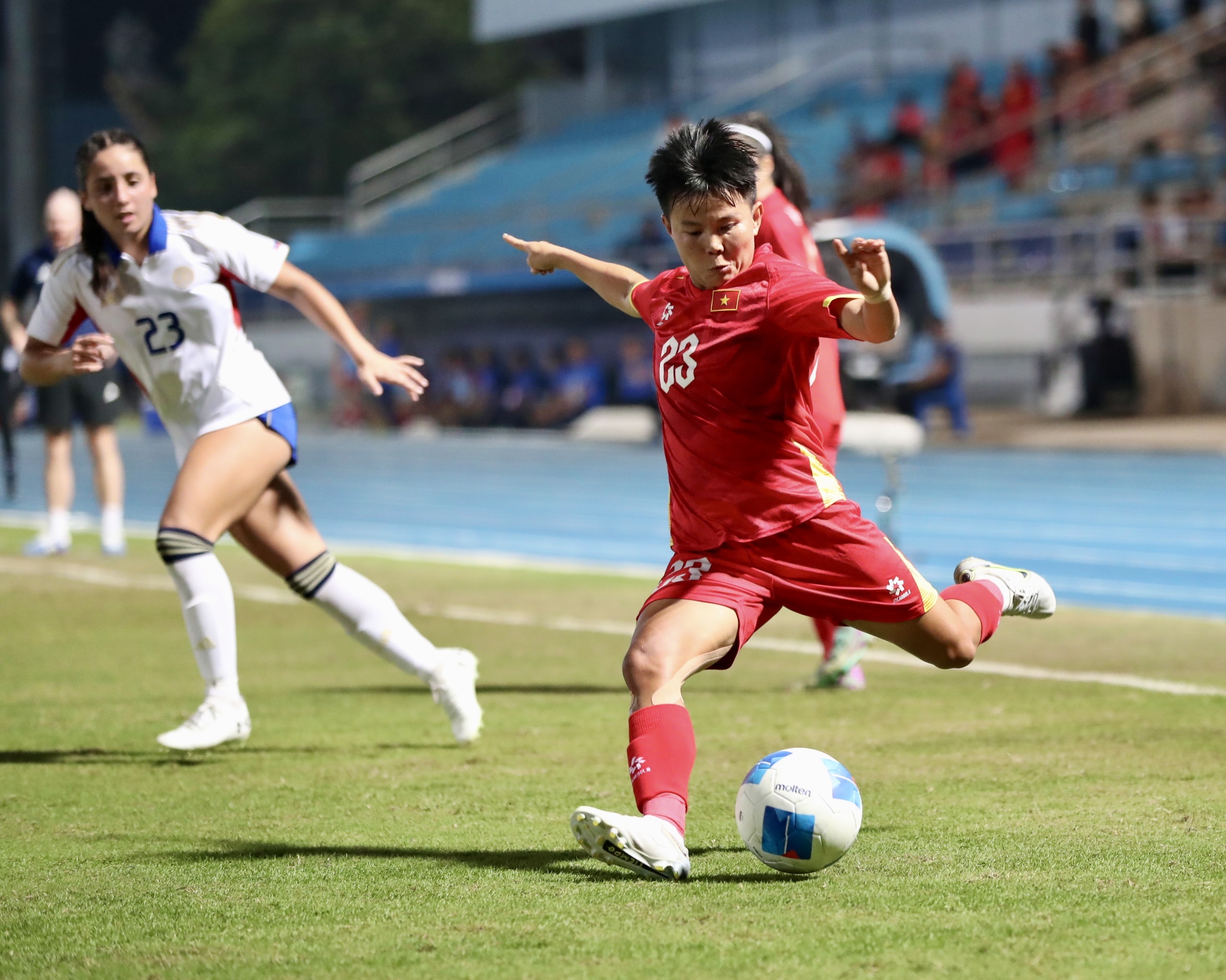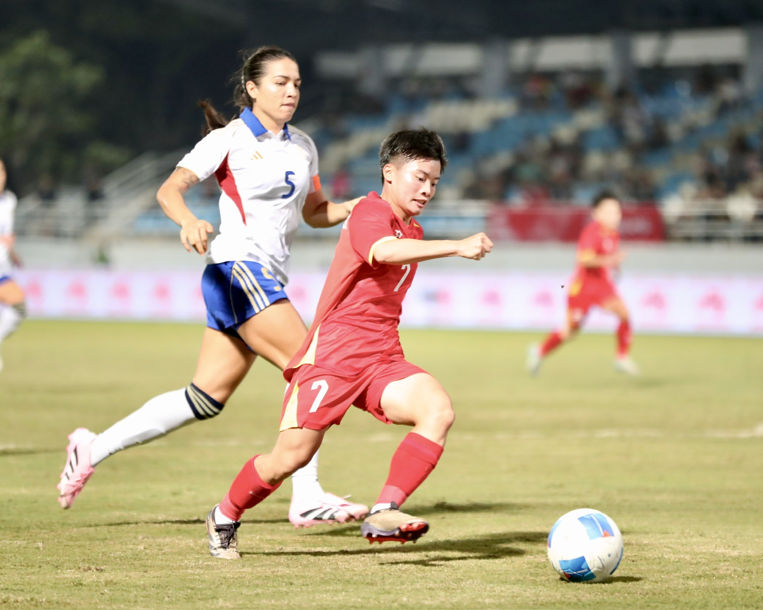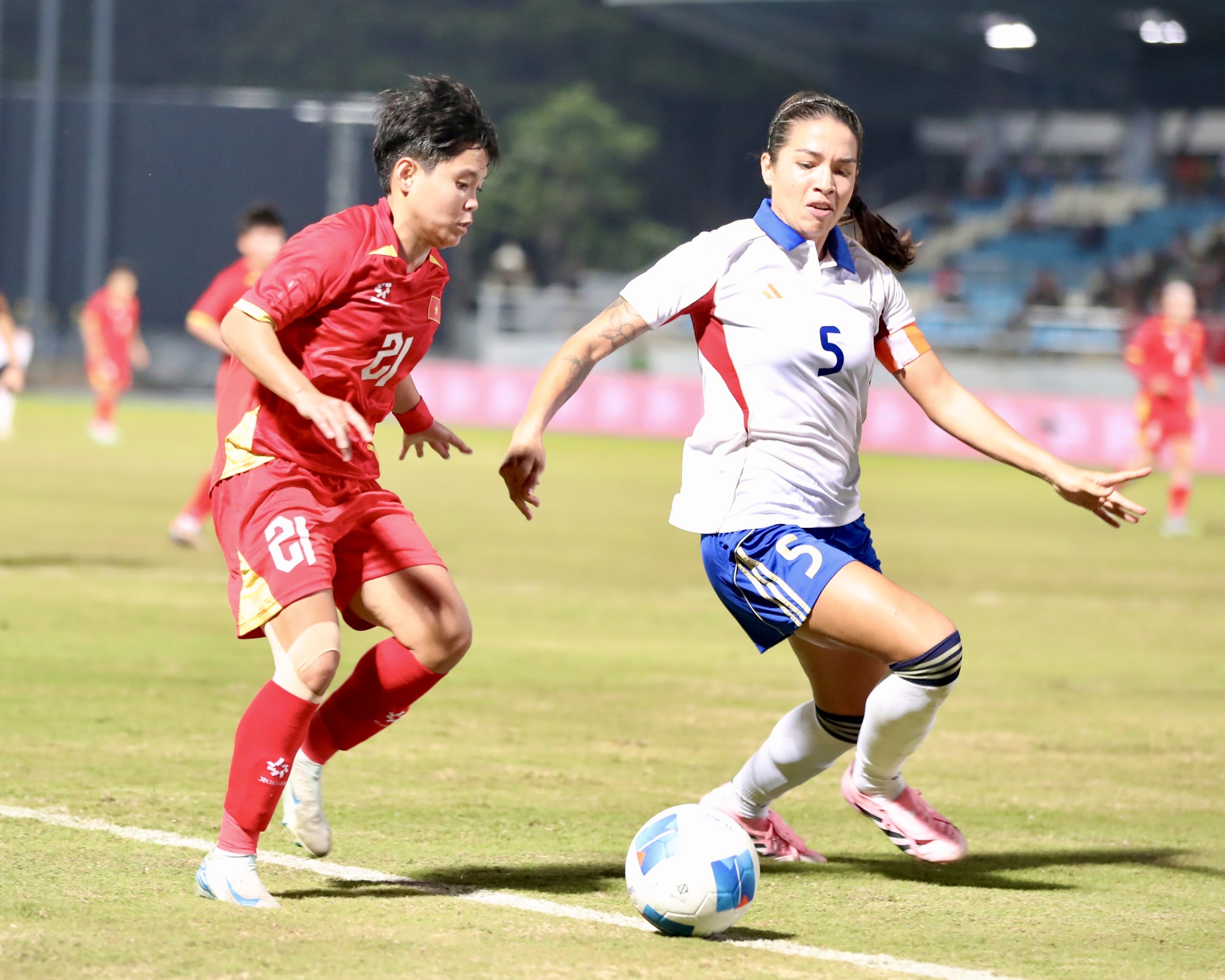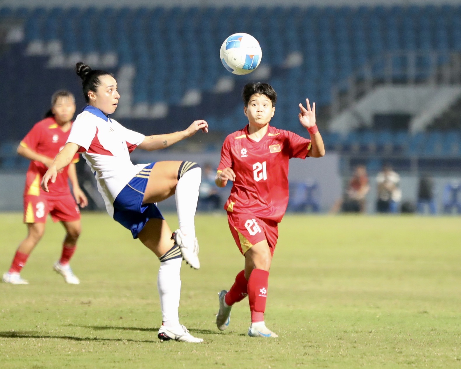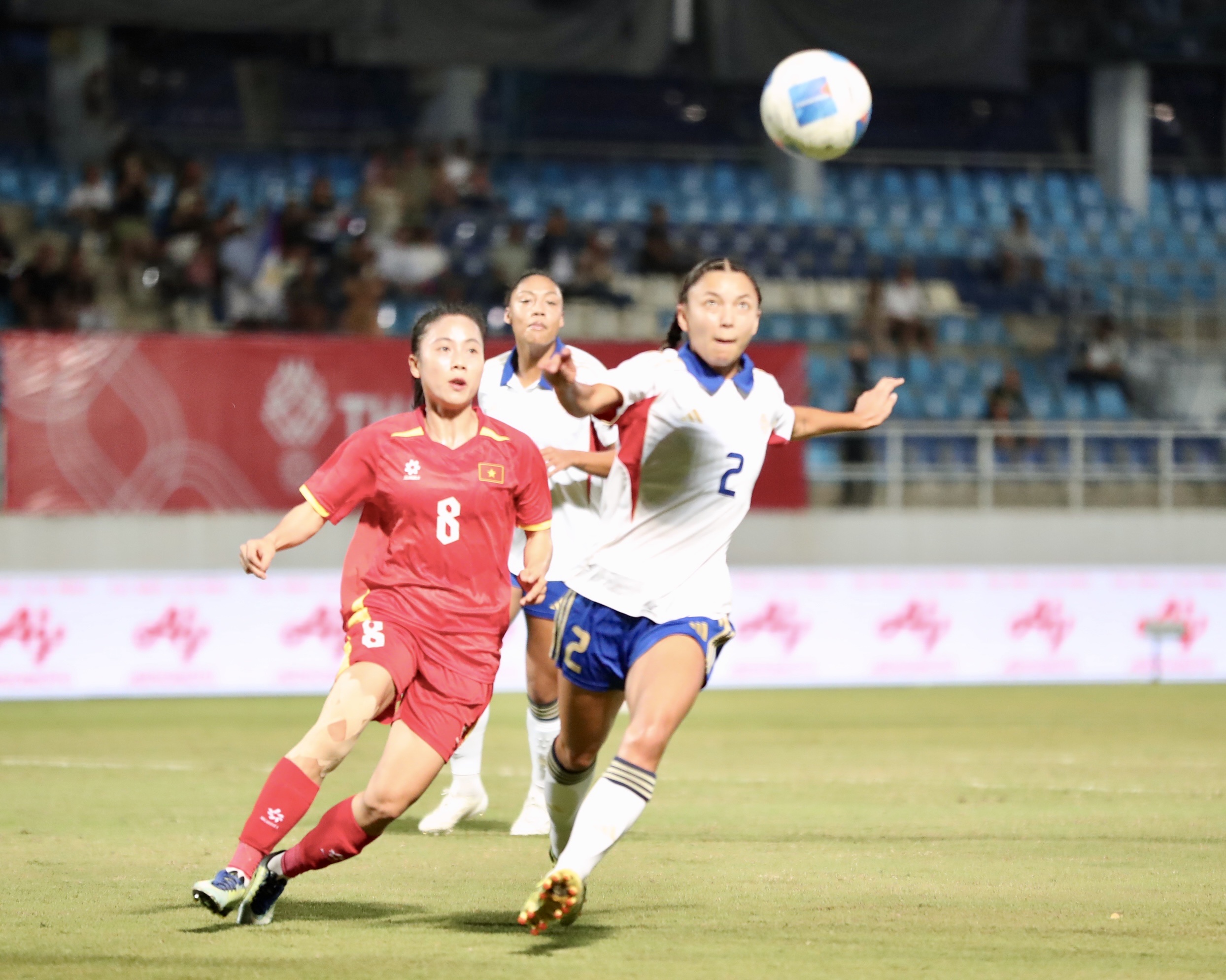 ĐT nữ Việt Nam chịu thất bại đáng tiếc 0-1 trước Philippines sau bàn thắng ở những phút bù giờ cuối cùng của trận đấu ở lượt trận thứ 2 bảng B môn bóng đá nữ SEA Games 33 vào tối 8-12.