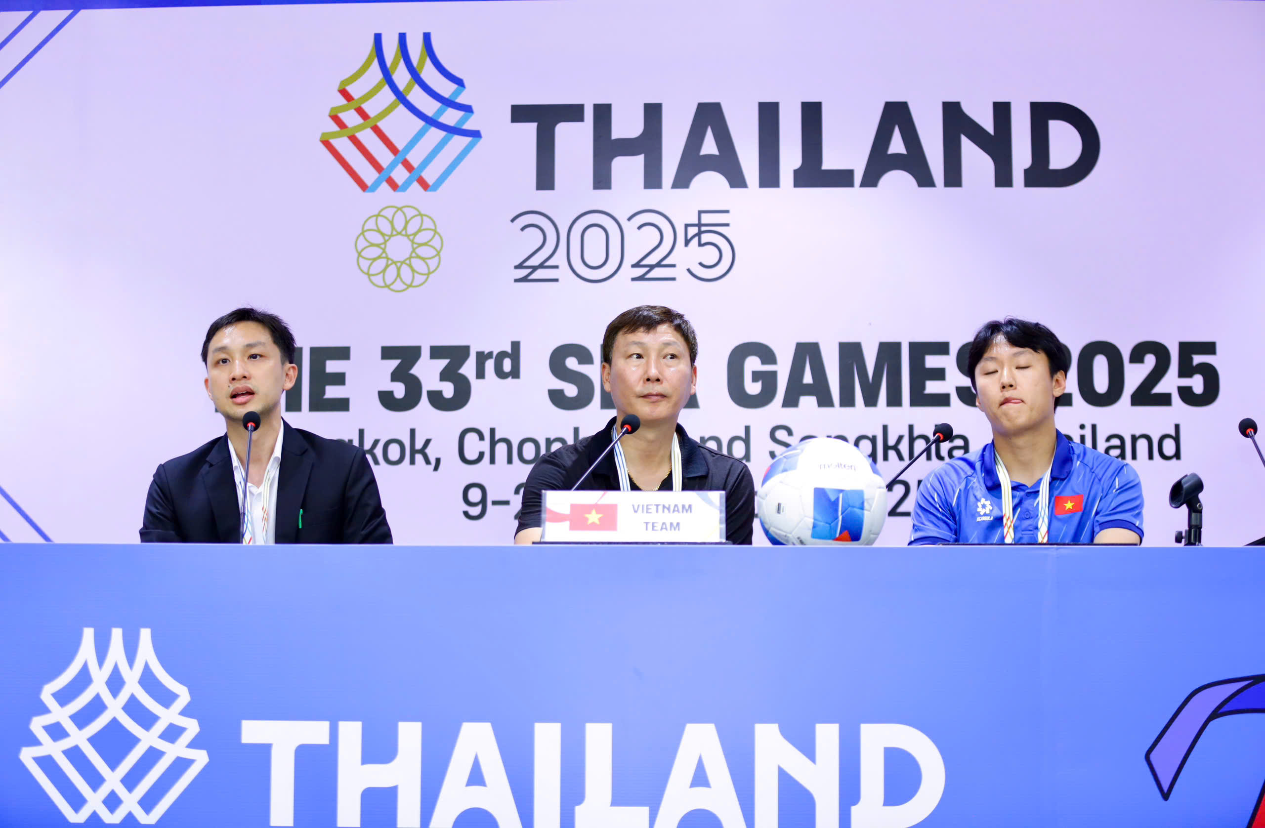 Phát biểu tại họp báo sau chiến thắng 2-1 trước U22 Lào trong trận ra quân bảng B môn bóng đá nam SEA Games 33, HLV Kim Sang-sik của U22 Việt Nam đã ghi nhận nỗ lực của toàn đội, đồng thời nhấn mạnh rằng điều quan trọng nhất là U22 Việt Nam đã đạt được mục tiêu giành trọn 3 điểm.