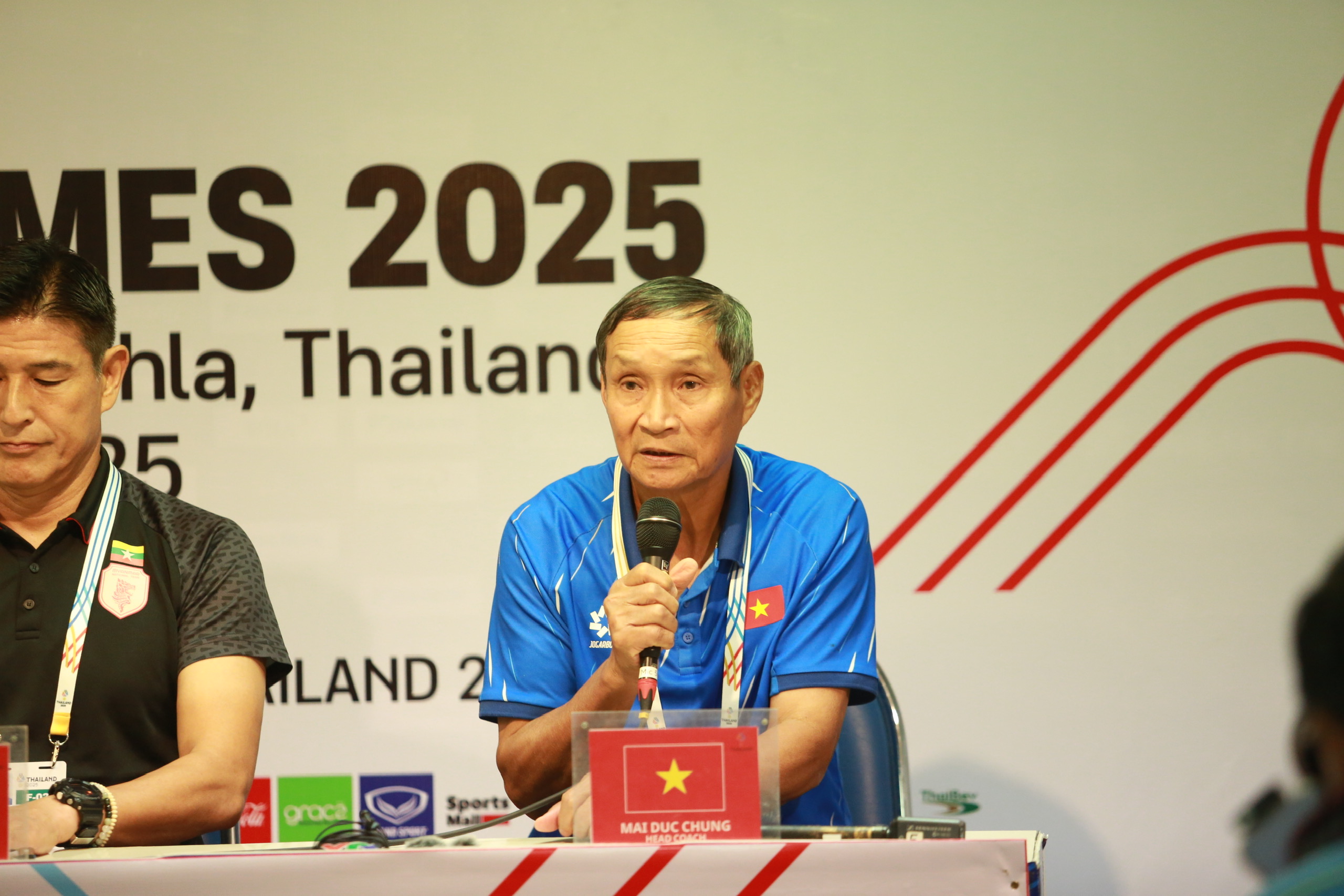Tại buổi họp báo có sự tham gia của đại diện các đội bảng B gồm: Việt Nam, Malaysia, Philippines, HLV Mai Đức Chung bày tỏ niềm vui khi trở lại Chonburi, nơi từng ghi dấu kỷ niệm đẹp với chức vô địch AFF Cup cách đây 6 năm. Tuy nhiên, ông nhấn mạnh toàn đội hiện tại đang tập trung tối đa cho nhiệm vụ tại SEA Games 33.