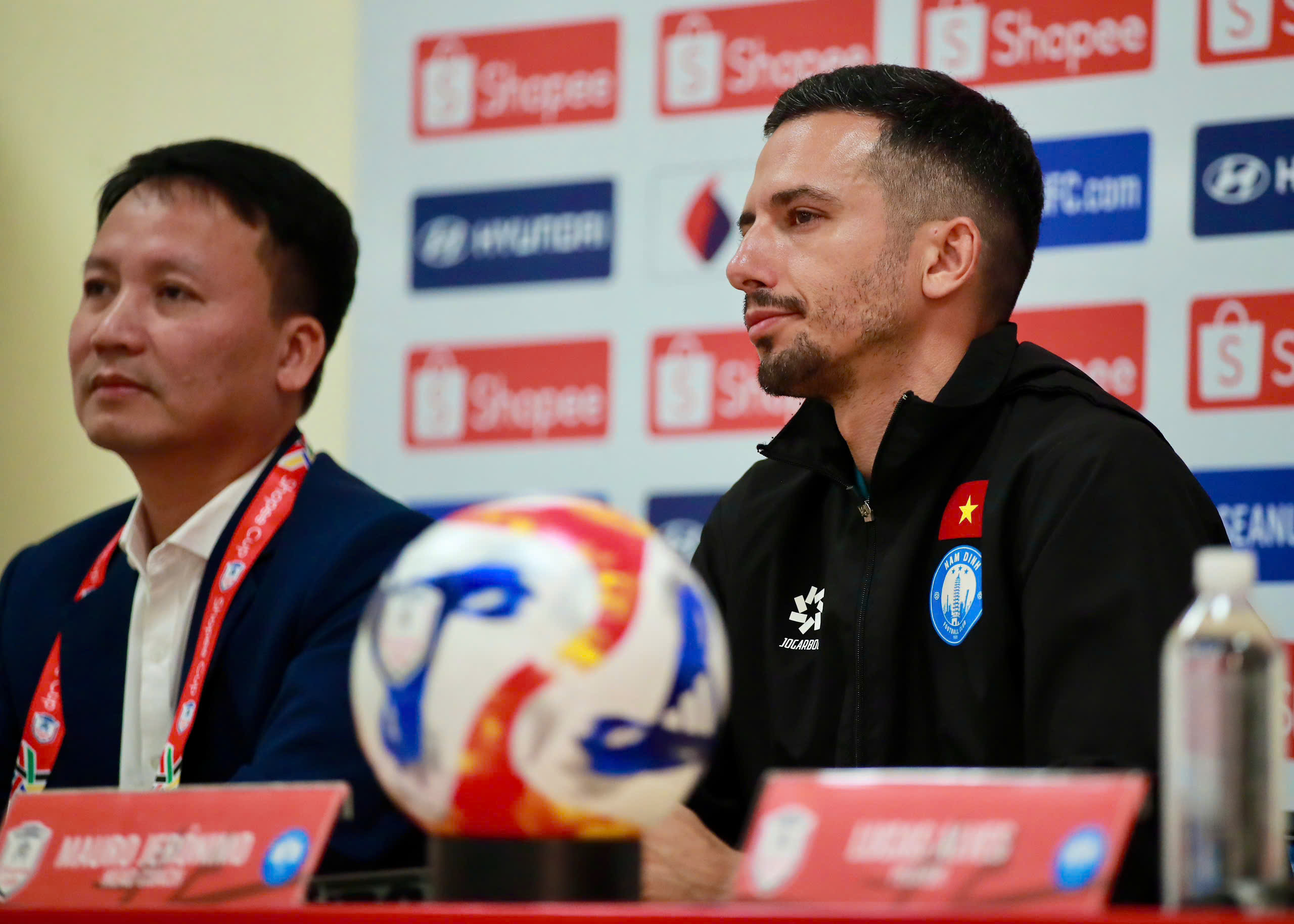 Chiều 28-1, trong buổi họp báo trước cuộc tiếp đón đại diện Singapore trên sân Thiên Trường, HLV Mauro Jerónimo cùng hậu vệ Lucas Alves chia sẻ về quyết tâm giành trọn 3 điểm của đội bóng thành Nam.