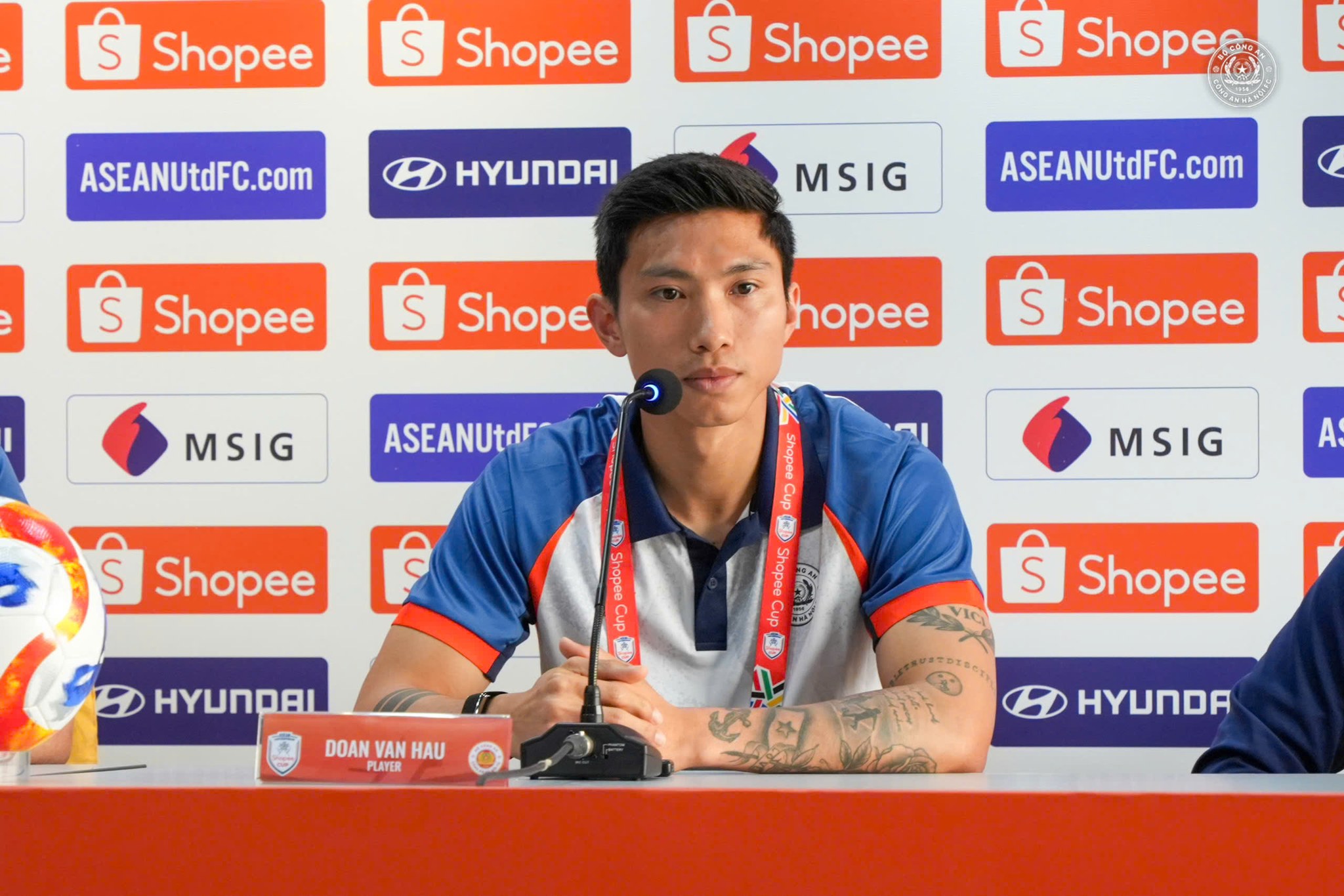 Cùng tham dự họp báo, hậu vệ Đoàn Văn Hậu thể hiện rõ quyết tâm của toàn đội khi khẳng định trận đấu không chỉ mang ý nghĩa với riêng CLB mà còn là niềm tự hào của bóng đá Việt Nam trên đấu trường khu vực.