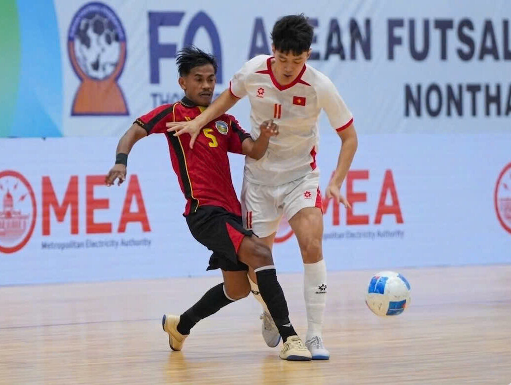 Đè bẹp Timor-Leste với tỷ số 7-1 trong trận đấu chiều 7-4, ĐT Futsal Việt Nam khẳng định sức mạnh tuyệt đối tại bảng A Giải vô địch Đông Nam Á 2026. Chiến thắng hủy diệt này giúp thầy trò HLV Diego Giustozzi chạm một tay vào tấm vé vòng bán kết.