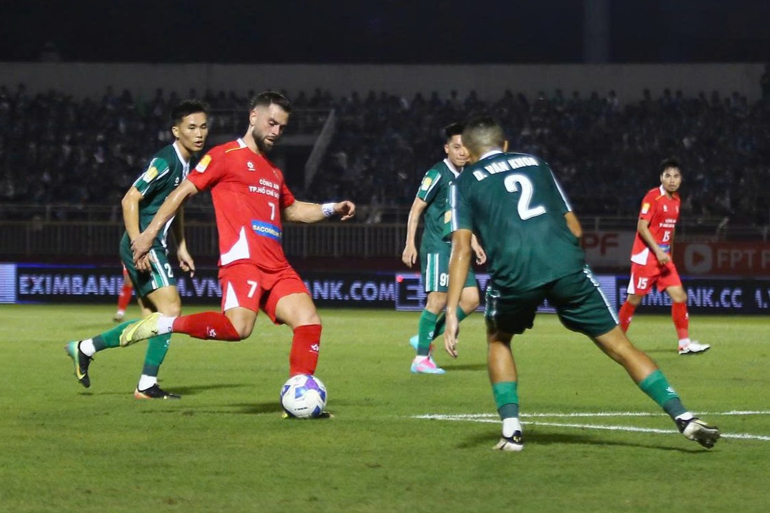Sang hiệp 2, thế trận áp đảo vẫn được Công An TP.HCM duy trì. Phút 60, Khoa Ngô khiến khán giả suýt xoa khi dứt điểm sạt cột dọc trong gang tấc. Tuy nhiên, sự kiên trì của đội bóng “ngành công an” cuối cùng cũng được đền đáp ở phút 76.
