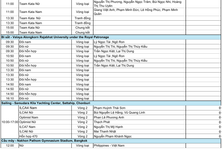 Bên cạnh đó, các đội tuyển bi sắt, đua thuyền buồm, cầu mây, teqball và thể dục dụng cụ cũng đồng loạt thi đấu, tạo nên một ngày tranh tài dày đặc với kỳ vọng mang về thêm thành tích cao cho Đoàn TTVN.