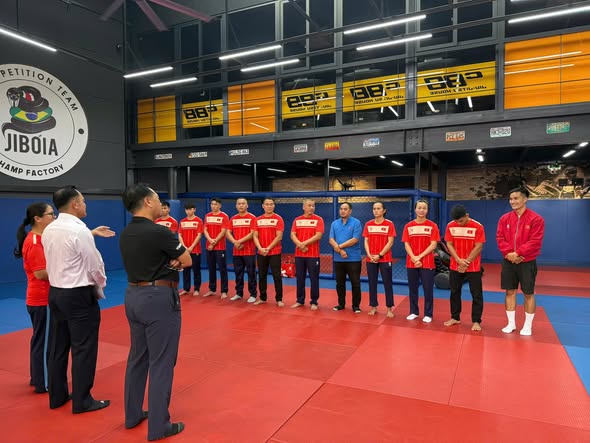 Trước ngày lên đường dự SEA Games 33, ông Võ Quốc Thắng – Phó Chủ tịch Liên đoàn Võ thuật tổng hợp Việt Nam cùng ông Mai Bá Hùng – Trưởng đại diện Văn phòng Liên đoàn tại TP.HCM đã đến thăm, động viên tinh thần và trao lá cờ Tổ quốc cho ĐT MMA Việt Nam. Đây được xem là nguồn khích lệ tinh thần lớn lao đối với các võ sĩ trước khi bước vào hành trình tranh tài tại Thái Lan.