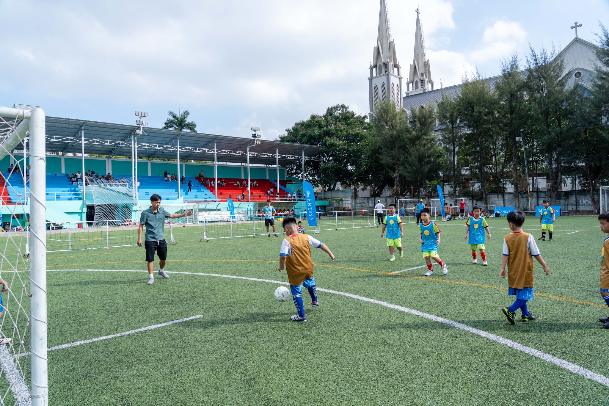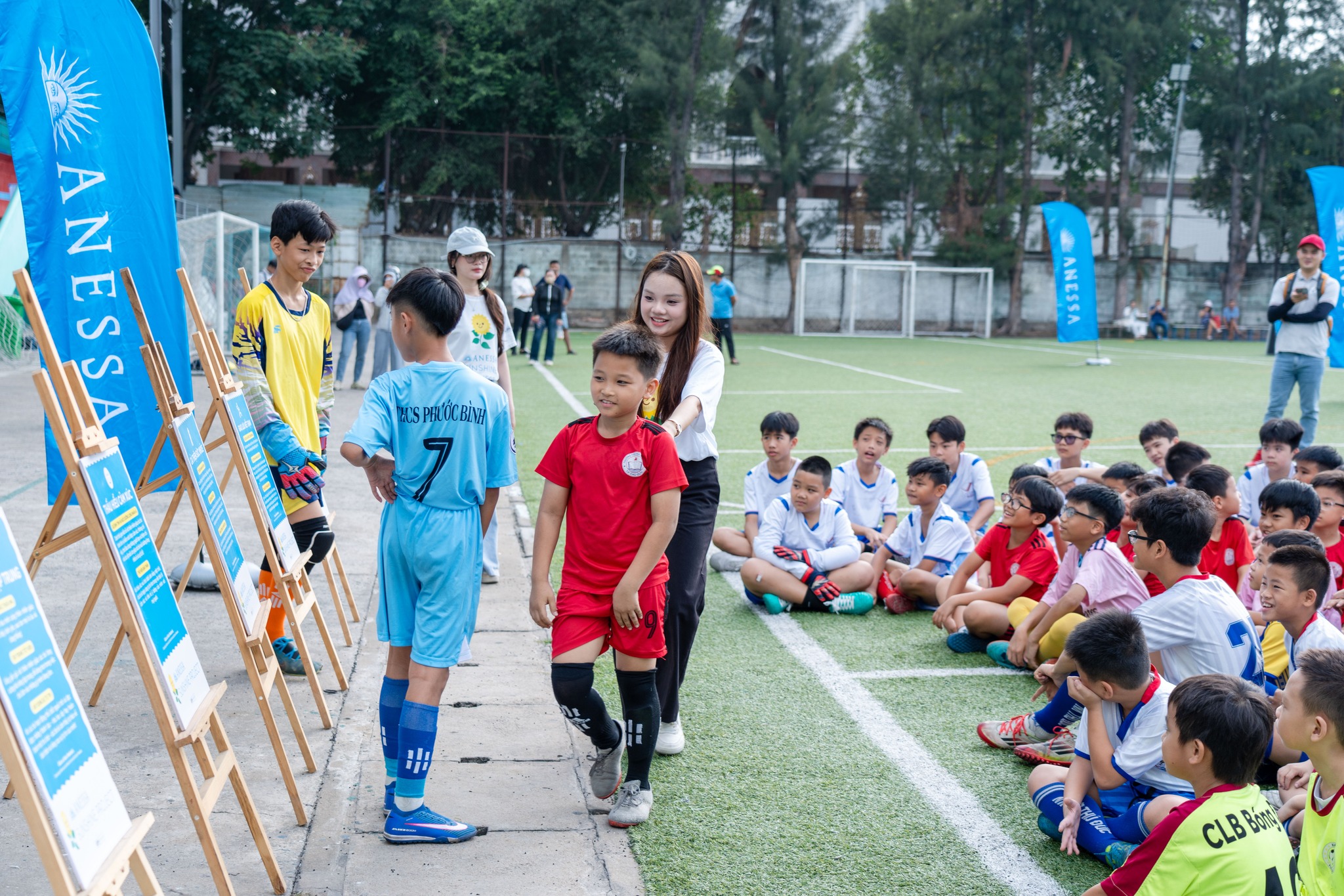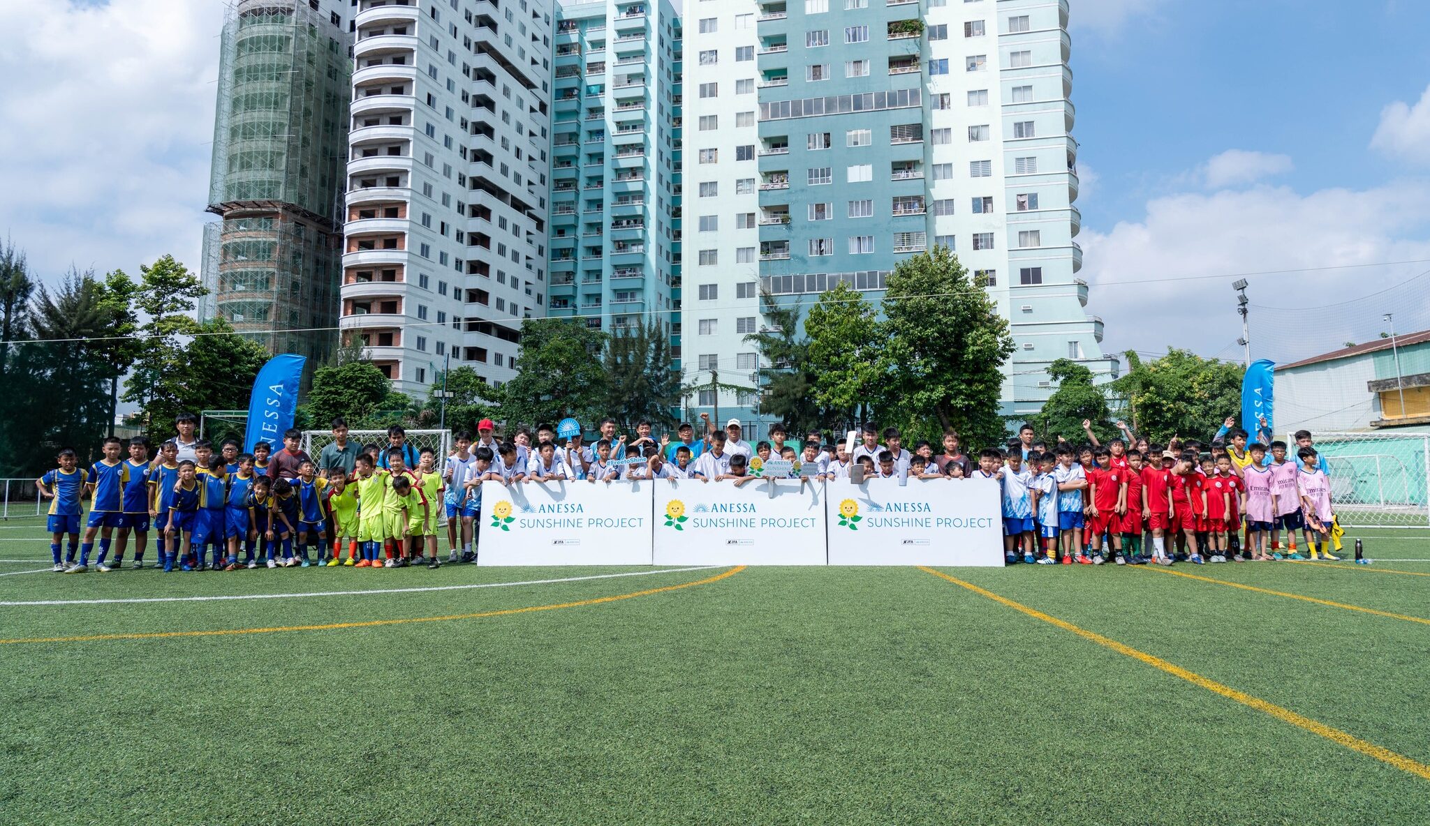 Sáng 5-4, sân bóng Phước Long trở nên sôi động khi đón gần 200 em nhỏ tham gia chương trình “ANESSA Sunshine Project”.
