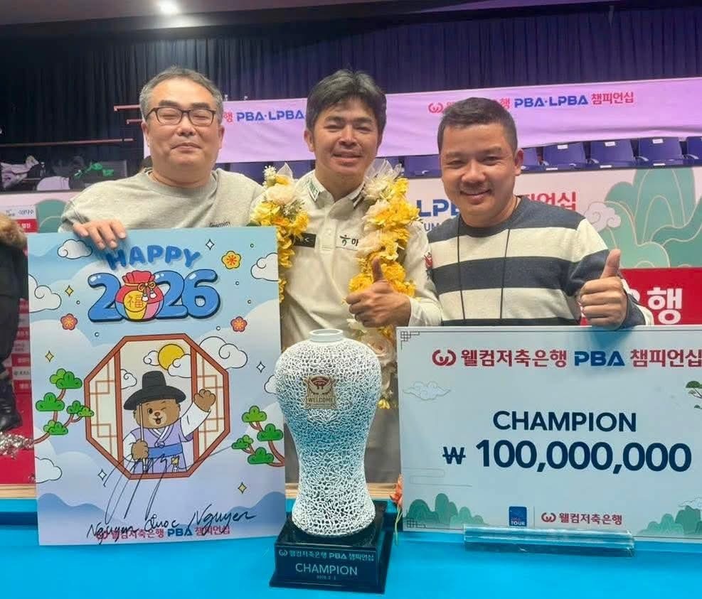 Chiến thắng nghẹt thở trước Daniel Sanchez giúp Nguyễn Quốc Nguyện đăng quang PBA Welcome Savings Bank 2025-2026, mang về 100 triệu won và tiếp tục đưa Billiards Việt Nam vươn tầm trên đất Hàn Quốc.