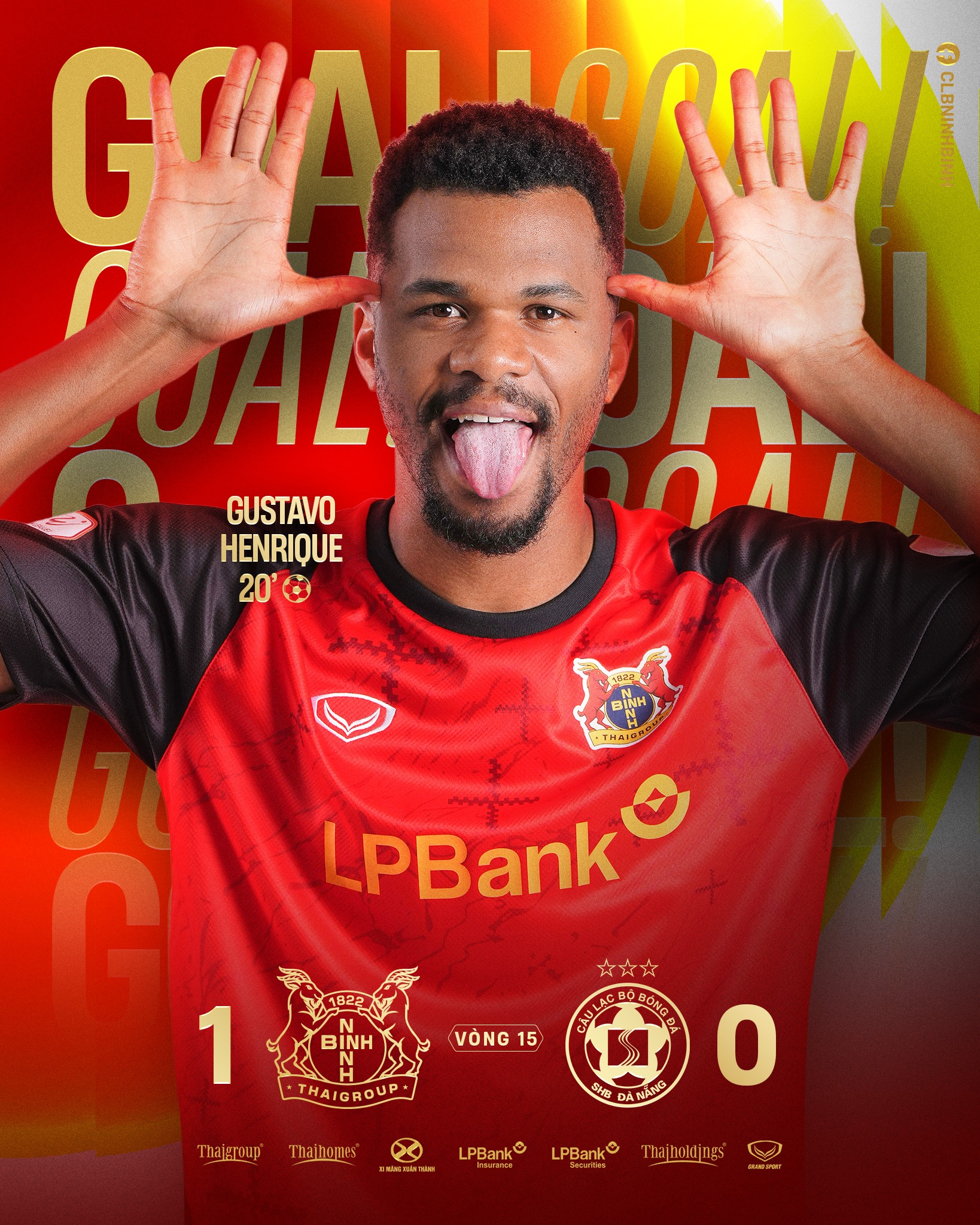 Nỗ lực của Ninh Bình được đền đáp ở phút 20. Từ pha tạt bóng bên cánh phải của Tiến Anh, Gustavo Henrique bật cao đánh đầu nguy hiểm, bóng chạm người hậu vệ Đức Anh đổi hướng rồi bay vào lưới. Bàn thắng giúp đội bóng của HLV Vũ Tiến Thành thi đấu tự tin hơn và phần nào kiểm soát được nhịp độ trận đấu.