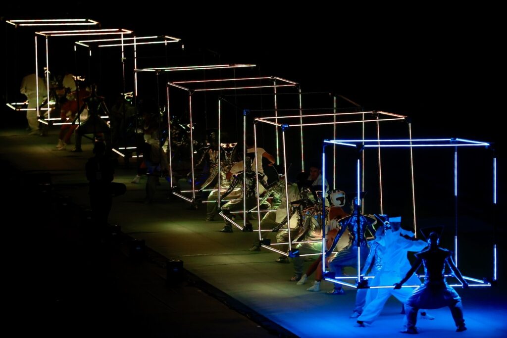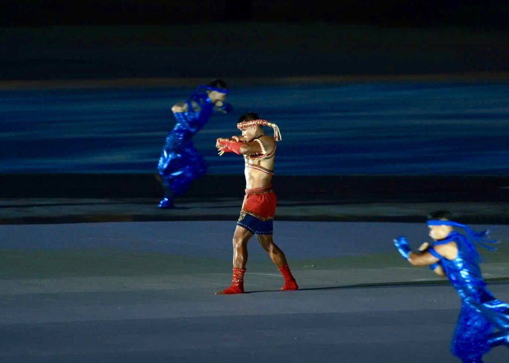 Tái hiện các môn thể thao khi có 11 hình lập phương có thể tích khoảng 27 met khối được dụng trên sân khấu, trong tiết mục One Spirit (một tâm hồn). Ở đó, các nghệ sĩ mặc trang phục theo những môn võ tại Đại hội Đông Nam Á như: Muay Thai, Pencak Silat hay Wushu. Ảnh: Nhật Minh.Võ sĩ 43 tuổi Buakaw Banchamek trình diễn các động tác Muay Thai, võ truyền thống Thái Lan. Ảnh: Đức Đồng.Ca sĩ, Rapper Thái Lan Kasidech Bhuwakul (nghệ danh BamBam) trình diễn. BamBam còn hát riêng vài bài khác, đặc quyền không dành cho nghệ sĩ nào khác ở lễ khai mạc. BamBam 28 tuổi là niềm tự hào Thái Lan, sở hữu tài khoản Instagramcó hơn 18 triệu lượt người theo dõi. Ảnh: Đức Đồng.Ảnh: Nhật Minh.