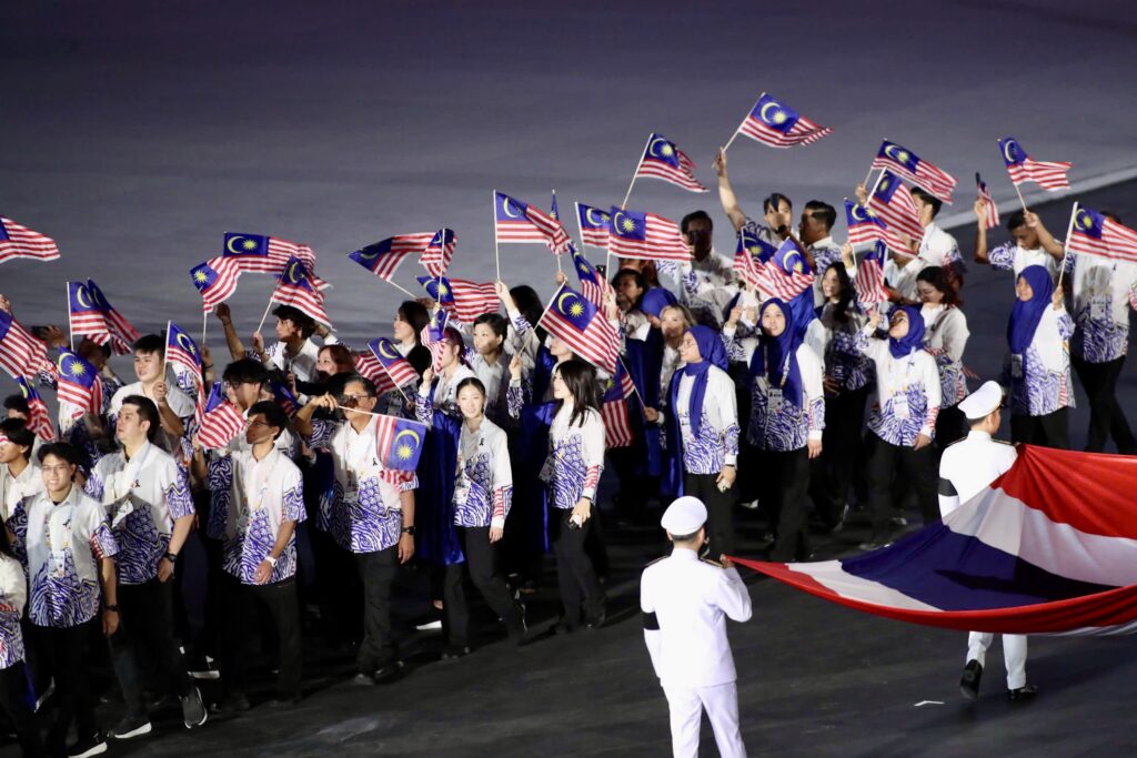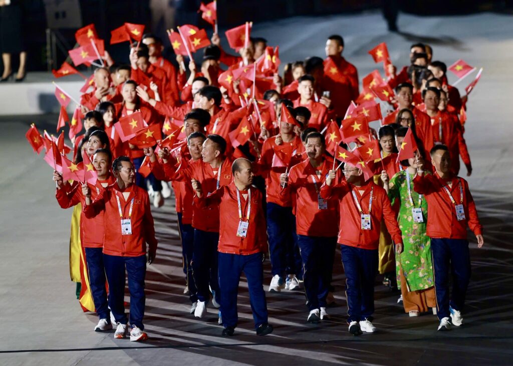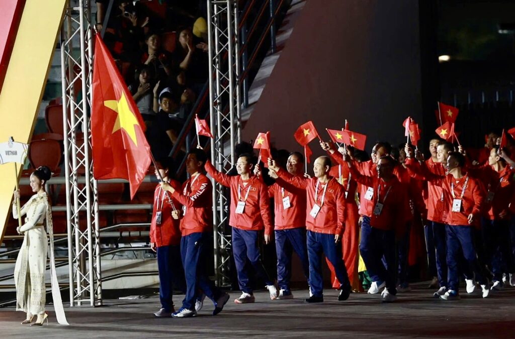 Đoàn Thể thao Việt Nam diễu hành. VĐV Lê Minh Thuận (Taekwondo) và Lê Thanh Thúy (bóng chuyền) được cầm cờ cho Việt Nam trong lễ khai mạc. Tại lễ khai mạc SEA Games 33, Đoàn Thể thao Việt Nam có khoảng vài chục thành viên tham gia diễu hành. Đoàn đã dự các môn như bóng đá, cầu lông và bóng chày. Tại SEA Games 33, Đoàn Thể thao Việt Nam góp mặt 1.165 thành viên, trong đó có 842 VĐV.