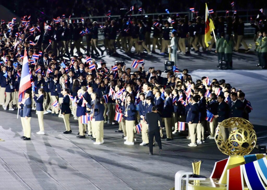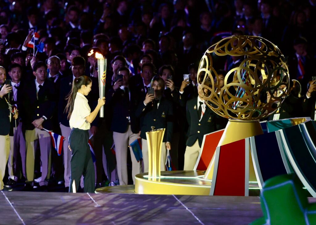 Tiết mục ‘Khơi lửa Đại hội’. Tiết mục thứ hai mang tên tiếng Anh “Ignite the Game”, quy tụ nhiều nghệ sĩ mang theo trang phục như những ngọn lửa. Ảnh: Đức Đồng.Rất đông khán giả có mặt trên SVĐ Rajamangala để theo dõi lễ khai mạc SEA Games 33.Nhà vua và Hoàng hậu Thái Lan vào khu VIP. Sau khoảng 30 phút chương trình gián đoạn, Nhà vua Vajiralongkorn và Hoàng hậu Sineenat mới xuất hiện trên khán đài. Những người Thái Lan đều cúi xuống để chào hai vị khách đặc biệt. Ảnh: Đức Đồng.