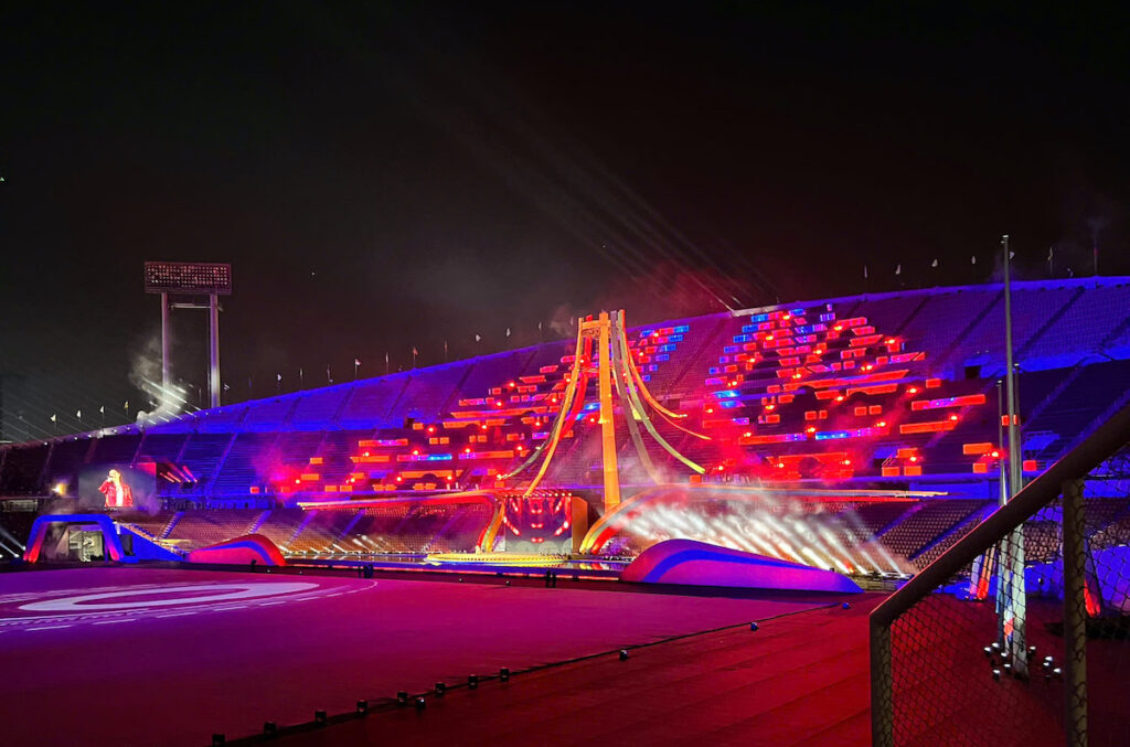 Quốc kỳ Việt Nam được treo trang trọng ở vị trí đầu tiên. Ảnh: Đức Đồng.Màn hình led hiển thị con số 33, thể hiện cho kỳ Đại hội Thể thao Đông Nam Á lần thứ 33 năm 2025 diễn ra trên đất Thái Lan. Ảnh: Đức Đồng.Ngay phần đầu lễ khai mạc đã có sai sót. MC giới thiệu SEA Games 33 có 574 bộ huy chương. Nhưng con số được trình chiếu lúc đó lại là 547. Ảnh: Quý Lượng.Ca sĩ Thái lai Bỉ Violette Wautier trình diễn Tiết mục nghệ thuật đầu tiên trên sân khấu chính thuộc về nữ ca sĩ pop 32 tuổi Violette Wautier. Cô bắt đầu nổi tiếng khi tham gia chương trình The Voice Thailand năm 2013, ở tuổi 20. Cô thể hiện bài hát chính thức của Đại hội, có tên 1%. Ảnh: Đức Đồng.