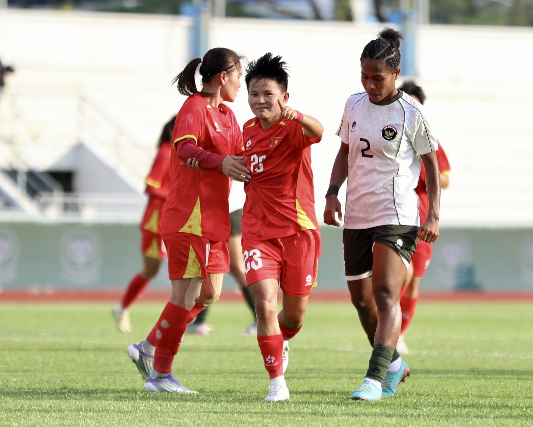 ĐT nữ Việt Nam đã thể hiện đẳng cấp vượt trội dù gặp nhiều khó khăn trước hàng phòng ngự chặt chẽ của Indonesia, giành chiến thắng thuyết phục với tỷ số 5-0. Kết quả này giúp thầy trò HLV Mai Đức Chung ghi tên mình vào trận chung kết với quyết tâm bảo vệ tấm HCV SEA Games.