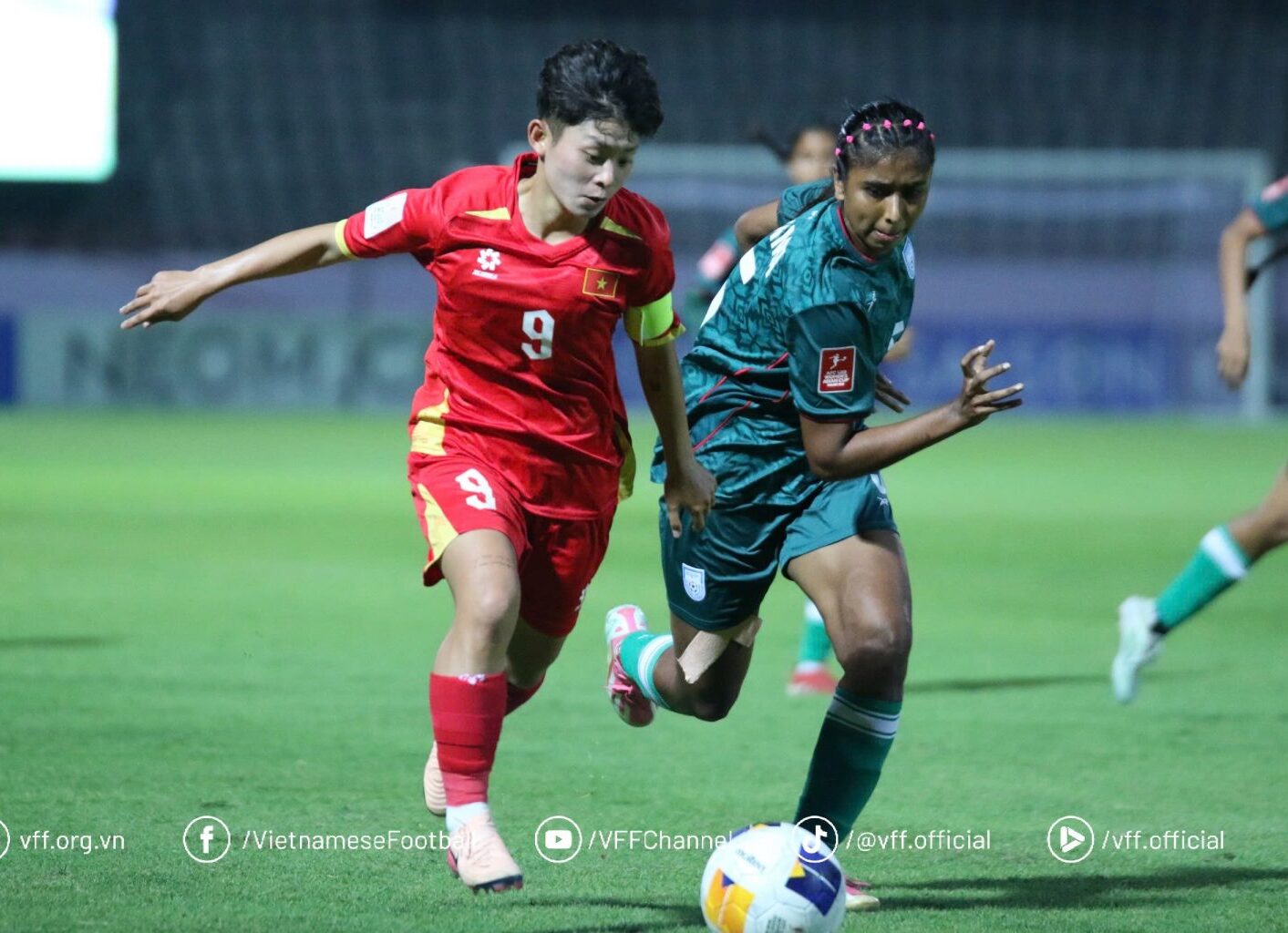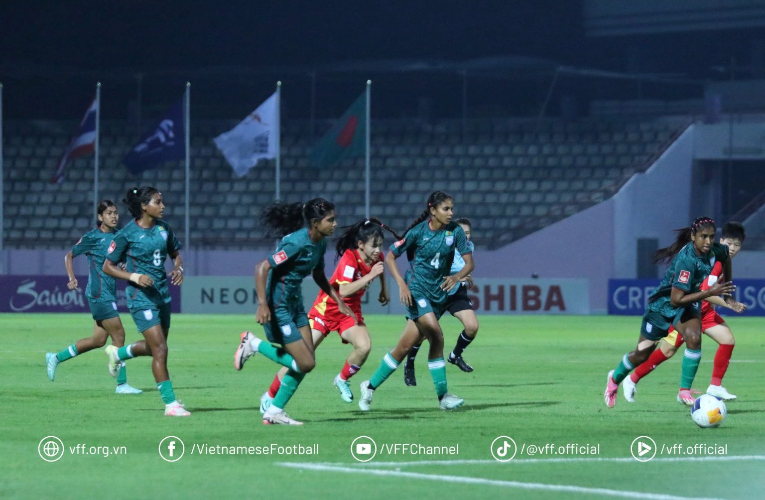 Ngay sau tiếng còi khai cuộc, các cô gái áo đỏ đã chủ động tràn lên phần sân đối phương nhằm tìm kiếm lợi thế sớm. Sự năng nổ của Ngân Thị Thanh Hiếu và Lưu Hoàng Vân liên tục đặt khung thành Bangladesh vào tình trạng báo động.