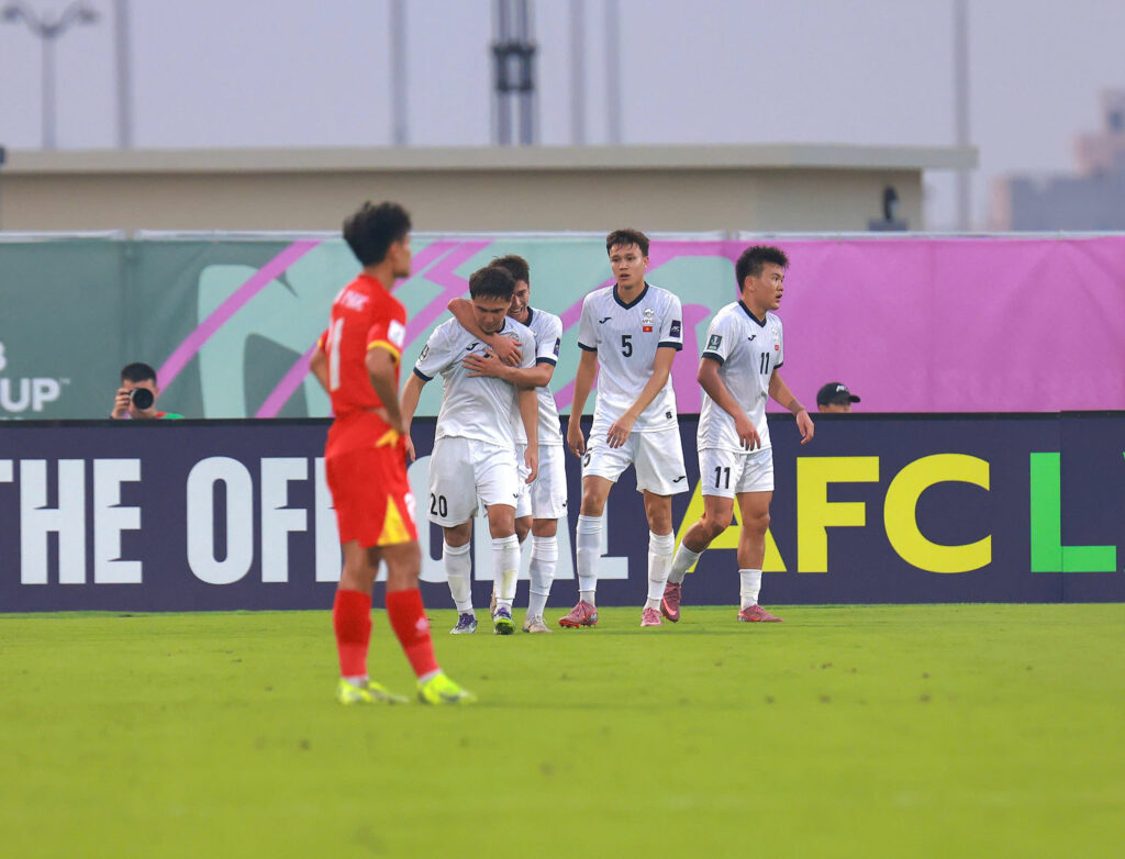 Tuy nhiên, phút 44, từ sai lầm chuyền bóng của Hiểu Minh, Marlen Murzakhmatov tung cú sút xa quyết đoán, gỡ hòa 1-1 cho U23 Kyrgyzstan trước khi hiệp 1 khép lại.