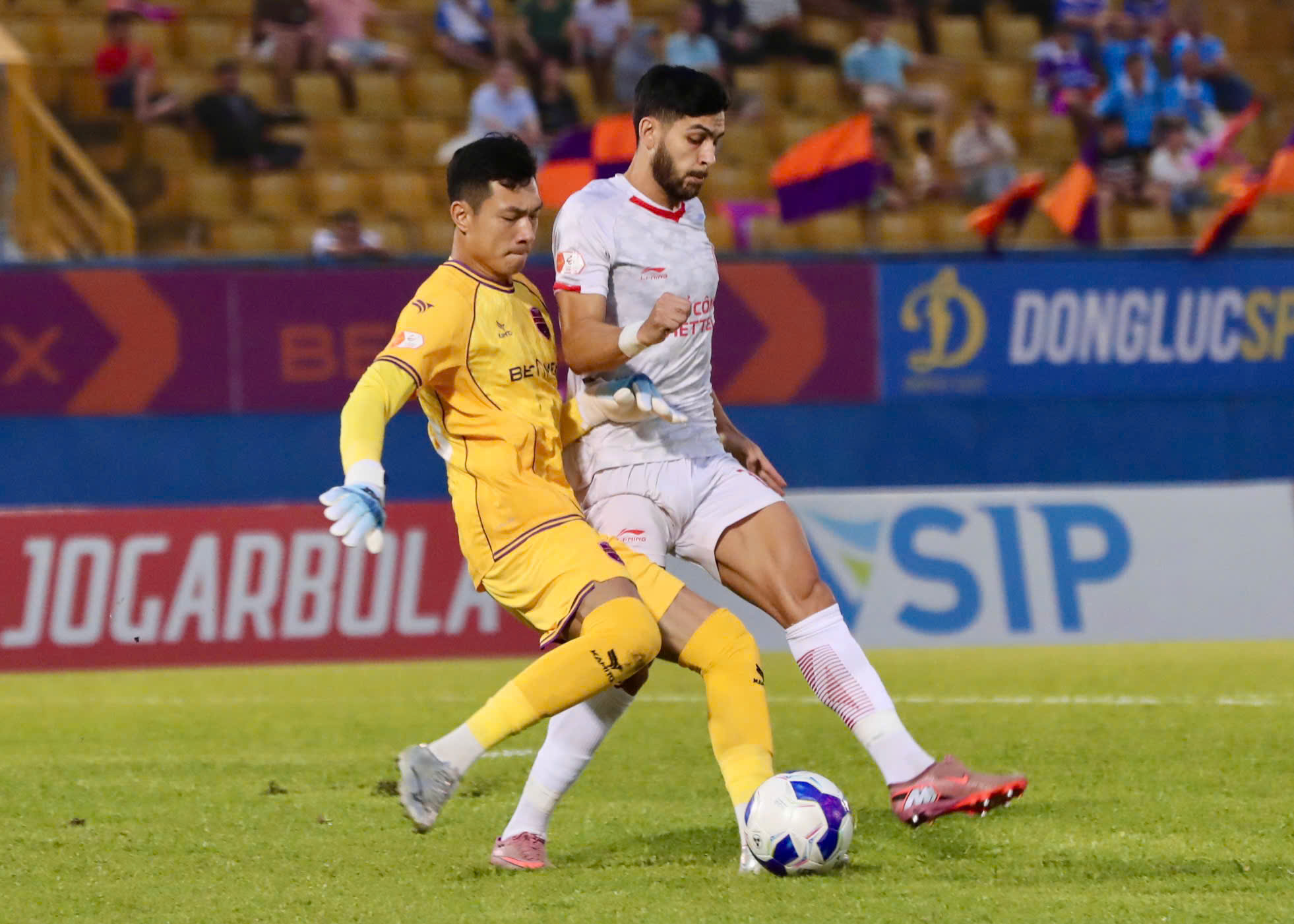 Tuy nhiên, niềm vui của đội khách chỉ kéo dài 5 phút. Phút thứ 8, từ cú sút không quá hiểm hóc của Thanh Long, thủ thành Văn Việt bất ngờ phán đoán sai hướng để bóng trôi vào lưới, giúp Becamex TP.HCM gỡ hòa 1-1.