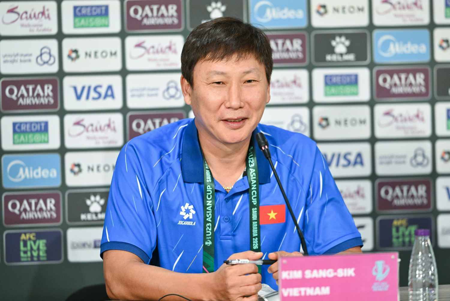 Phát biểu tại buổi họp báo trước trận bán kết, HLV Kim Sang Sik bày tỏ sự hài lòng với hành trình của U23 Việt Nam tại giải đấu năm nay. Nhà cầm quân người Hàn Quốc cho biết, việc vượt qua hàng loạt đối thủ mạnh từ vòng bảng đến tứ kết là minh chứng rõ ràng cho tinh thần thi đấu quả cảm và sự trưởng thành của toàn đội.