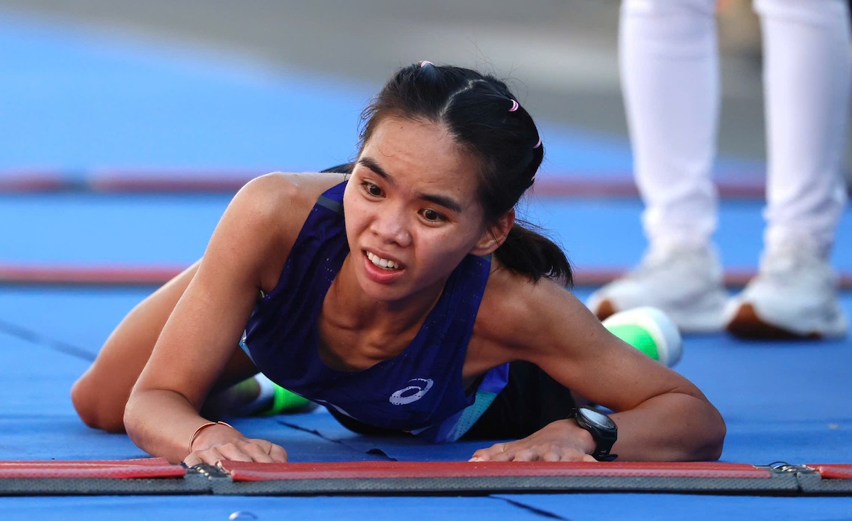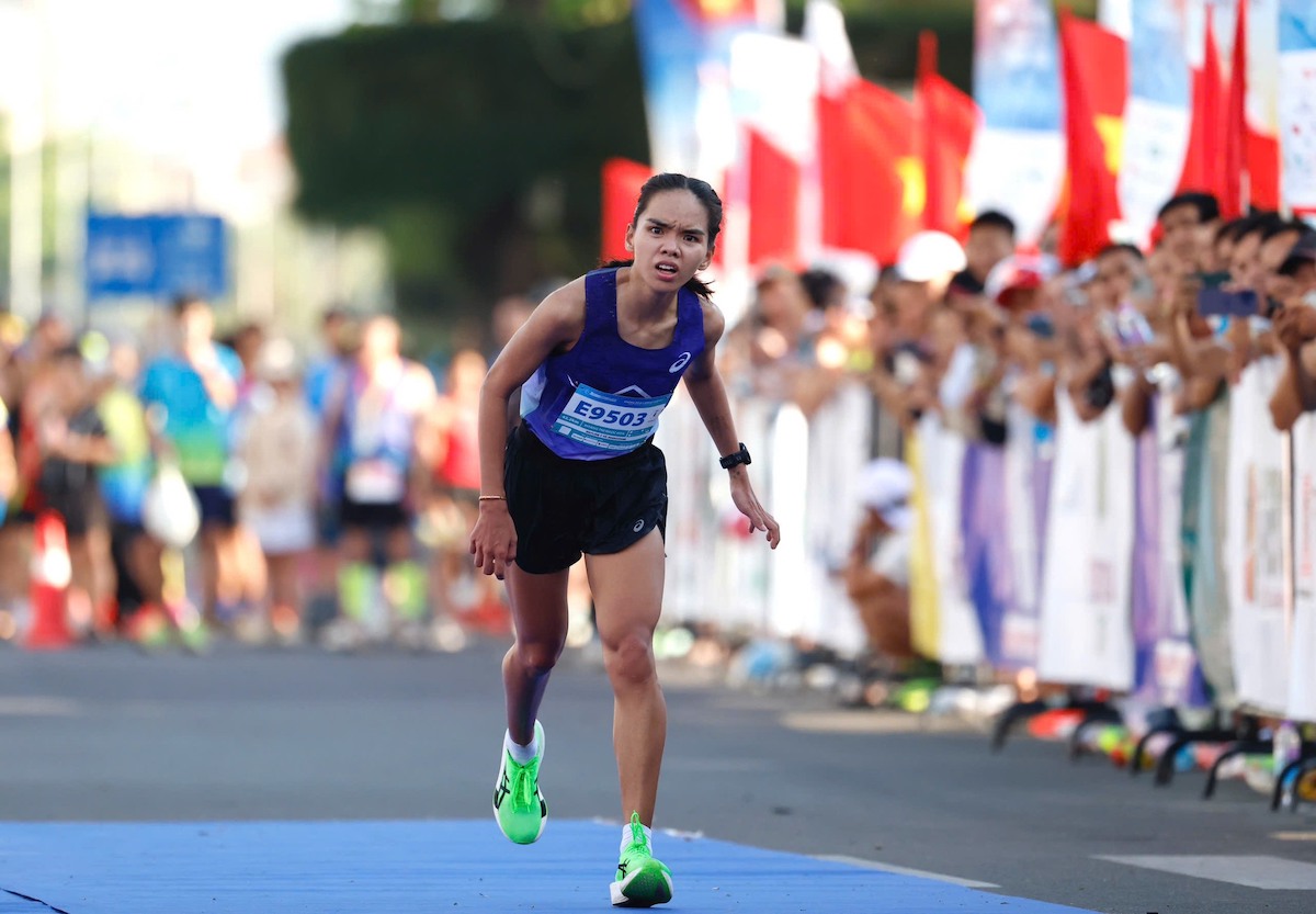Hình ảnh chân chạy nữ Hoàng Thị Ngọc Hoa dù té ngã nhưng vẫn lê từng bước một để chạm đích là hình ảnh ấn tượng nhất tại Tiền Phong Marathon 2026.