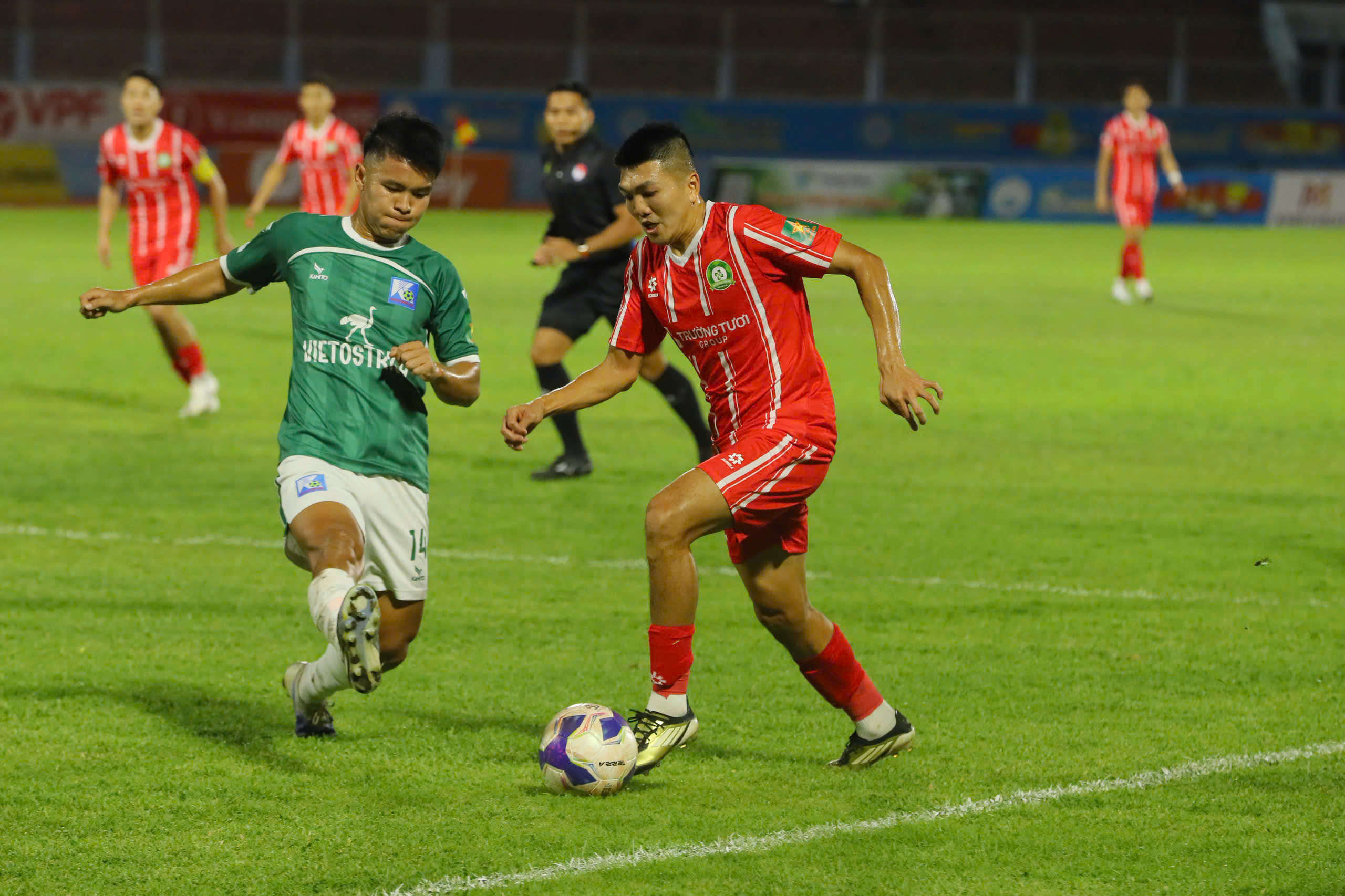 Trong khi đó, những pha phản công của đội khách luôn tiềm ẩn sự sát thương cao. Dù các chân sút của Trường Tươi Đồng Nai đã bỏ lỡ khá nhiều cơ hội ngon ăn để nới rộng cách biệt, nhưng sự kịch tính vẫn được duy trì đến những phút cuối cùng.