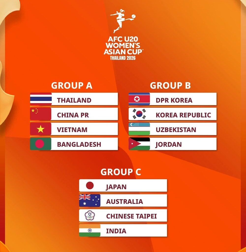 Theo kế hoạch, ngày 29-3 các cô gái U20 nữ Việt Nam sẽ lên đường sang Bangkok (Thái Lan) tham dự VCK U20 nữ châu Á 2026. Tại giải đấu này, U20 nữ Việt Nam nằm ở bảng A cùng với U20 nữ Trung Quốc, chủ nhà U20 nữ Thái Lan và U20 nữ Bangladesh.