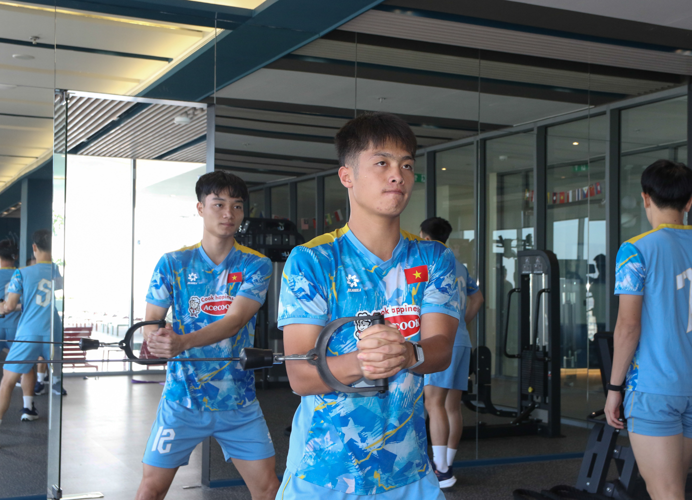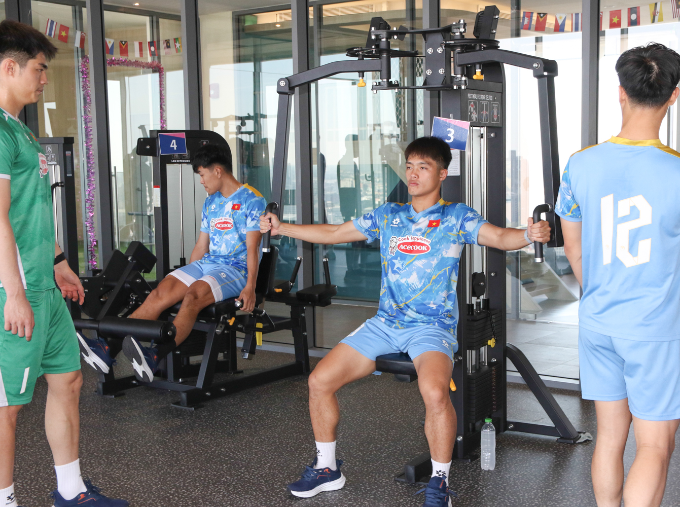 Việc đưa các cầu thủ vào phòng GYM thể hiện tầm quan trọng của việc duy trì sức mạnh và sức bền ở giai đoạn then chốt của giải đấu. Đặc biệt, các bài tập được thiết kế nhằm chú trọng đến việc làm nóng, giãn cơ, giúp các cầu thủ không bị “mất cảm giác thi đấu” do phải tạm nghỉ gần một tuần sau trận ra quân thắng U22 Lào.