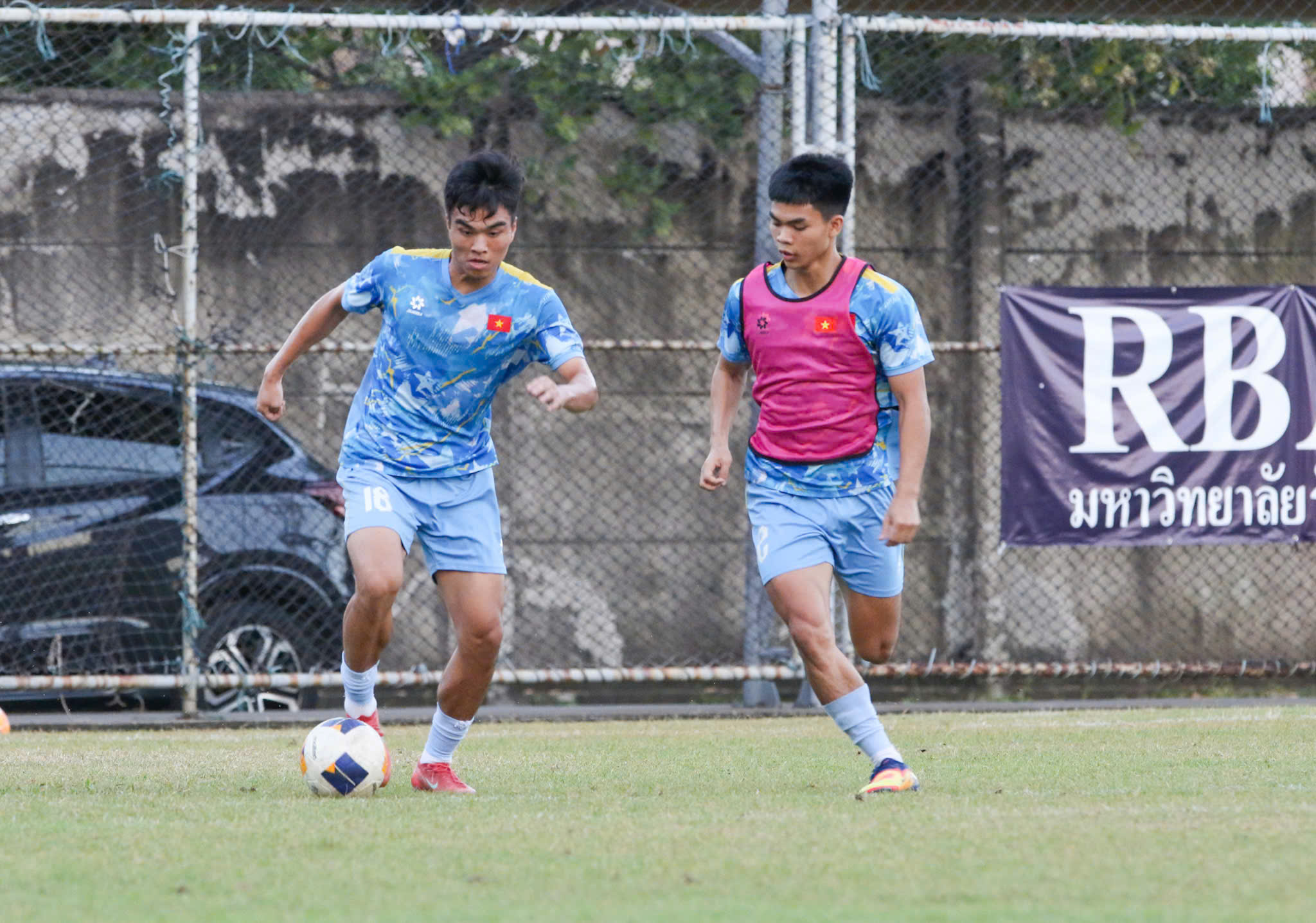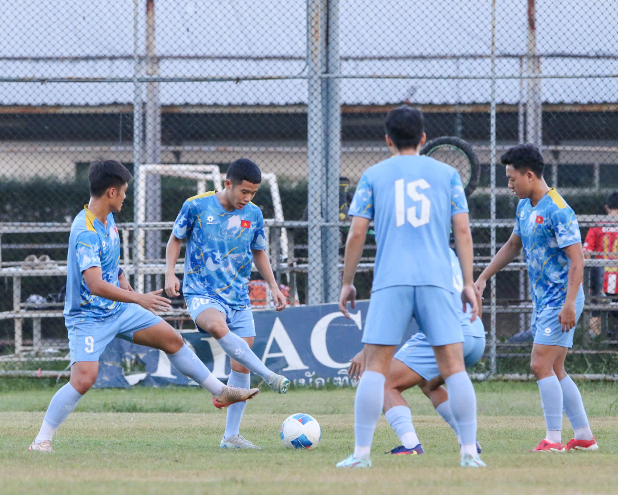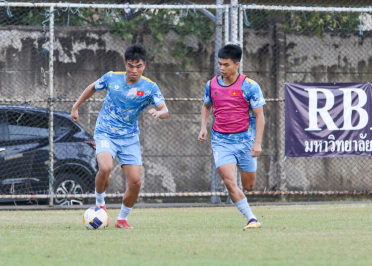 Trên sân tập, HLV Kim Sang Sik chia lực lượng thành hai nhóm để phù hợp với trạng thái thể lực và nhiệm vụ chuyên môn. Nhóm cầu thủ thi đấu chính ở trận bán kết với U22 Philippines chủ yếu thực hiện các bài vận động nhẹ, thư giãn gân cốt và hồi phục, trong khi nhóm còn lại được tăng cường các bài phối hợp chiến thuật và đối kháng trong phạm vi hẹp, giúp duy trì nhịp độ vận động và rèn kỹ năng chuyên môn.