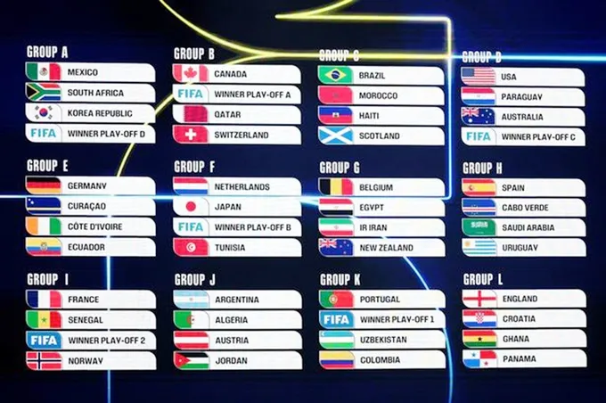 Buổi lễ bốc thăm vòng bảng World Cup 2026 diễn ra tại Trung tâm Biểu diễn Nghệ thuật Kennedy (Mỹ) vào thứ Sáu, đánh dấu bước khởi đầu cho kỳ World Cup mở rộng lên 48 đội. Sự kiện kéo dài gần một trận bóng đá và có sự xuất hiện của Tổng thống Mỹ Donald Trump. Các vận động viên nổi tiếng như Tom Brady, Shaquille O’Neal, Aaron Judge và Wayne Gretzky thực hiện bốc thăm.