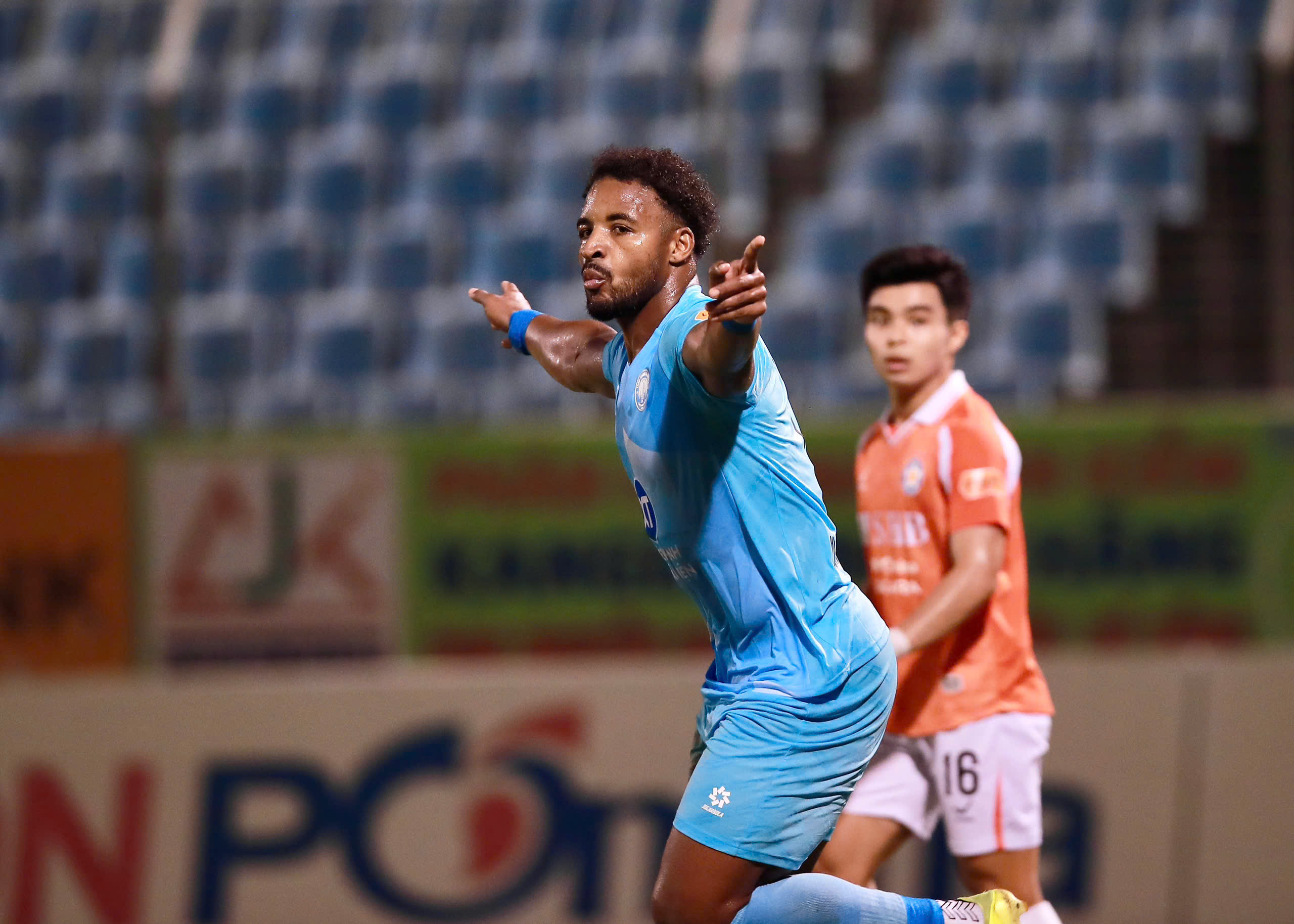 Sự cơ động của 2 hành lang cánh bên phía Nam Định đã gây ra rất nhiều khó khăn cho bộ đôi hậu vệ Đức Anh và Văn Hữu của đội chủ nhà. Đến phút 39, cách biệt được nhân đôi cho đội bóng “thành Nam”. Từ đường chuyền dọn cỗ của Lý Công Hoàng Anh, Akolo Ababa dứt điểm chuẩn xác ấn định tỷ số 2-0 để khép lại hiệp 1.